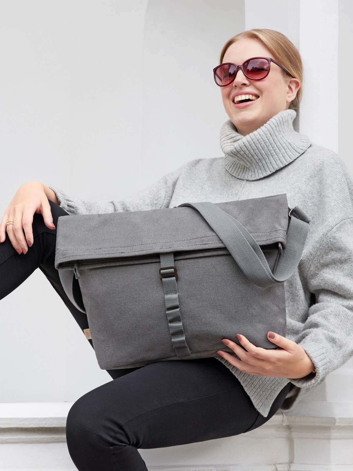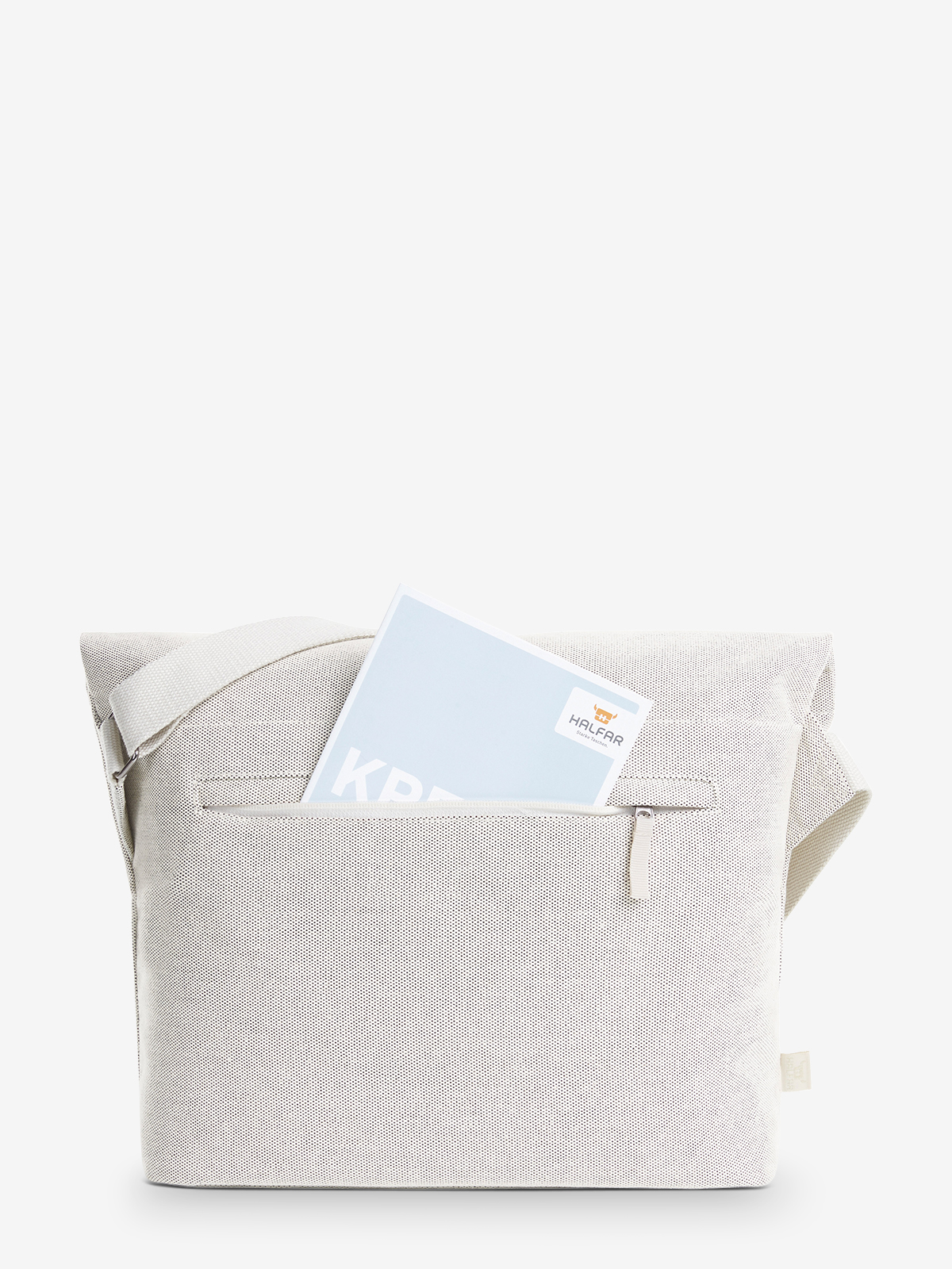 Light shades, natural materials, clear shapes: the Scandinavian style has moved into many homes, from Bielefeld to Berlin. At HALFAR® we also offer it to take home: in the LOOM shoulder bag. The comfortable cotton mix, the natural sandy shade from zip to shoulder strap and the linear design make this bag into a companion with a likeable Nordic flavour. Clever feature: the border with various flaps for variable closures and the obliquely angled shoulder strap, which allows the bag to always sit comfortably.