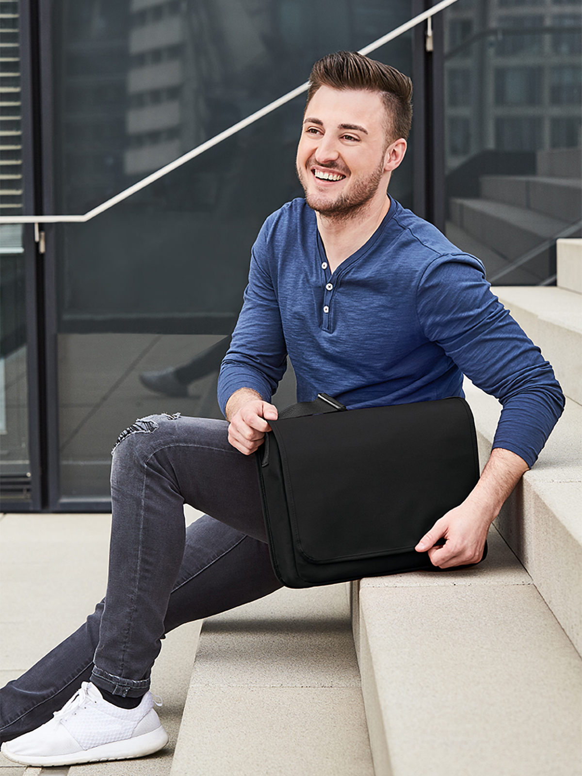 Sometimes you just need one thing to cater to all tastes. The shoulder bag KURIER conjures up a veritable rainbow of colours - and puts a smile on your face. So grab that promotion. Simply select the right colour to suit your Corporate Design. Fit out the organizer on the inside and the flat slip-in pocket for the promotional team if required. And decorate the front with your individual logo, of course. By the way: The KURIER obviously conveys your message perfectly as a customer premium or employee bag. And with excellent value for money