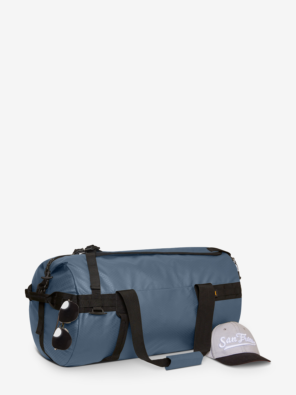 Comfortable sports travel bag with backpack function; spacious main compartment with 2-way zip and side buckles; zipped side pocket; zipped front pocket; all-round functional strap band; various handles; carry handles and concealed, padded and length-adjustable shoulder straps