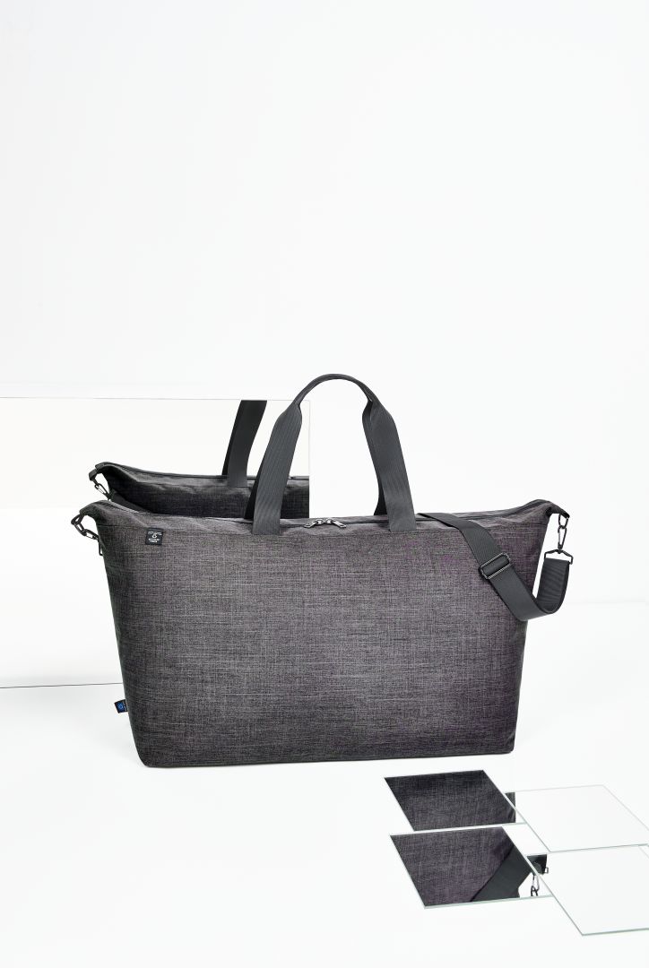 The weight of this sport/travel bag is just 720 grams. No wonder, as its upper material is made of rPET, and the fibres of recycled plastic bottles. It is light, saves waste, conserves resources and looks good doing so. Furthermore, the material’s high stability and durability comes from the special, innovative coating that manages entirely without PVC. Above all, you can travel sustainably with the spacious sport/travel bag EUROPE. As the name already implies, it is made in Europe. A bag for short journeys and of little weight and with impressive spaciousness, ideal not just for European trips, but also for the journey to the fitness centre and wherever else it takes you today – EUROPE has never been so light and beautiful before.
