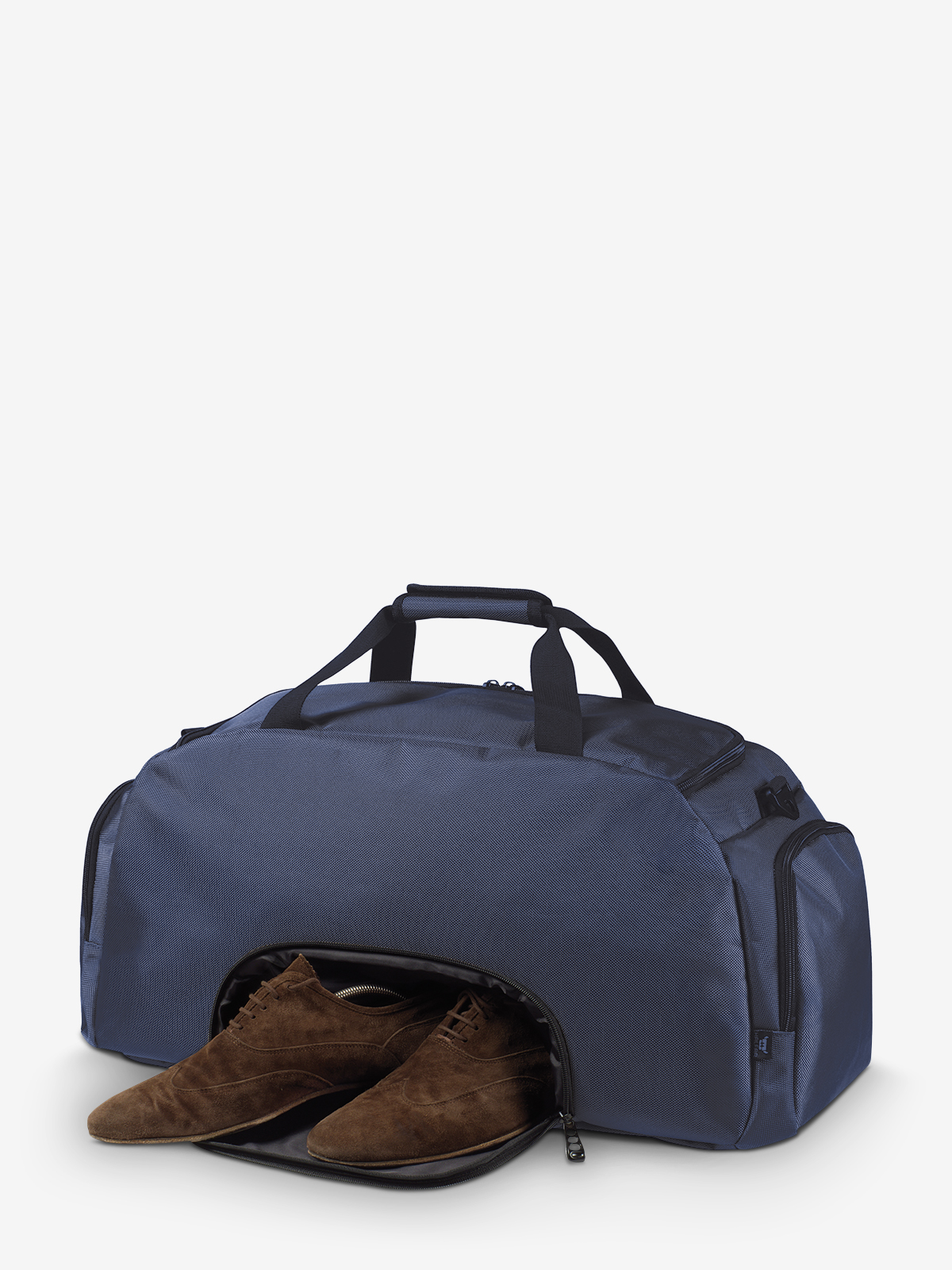 Where are you travelling to today? A meeting in London, a weekend in Paris or simply going to the office? One thing is certain: with its elegantly structured materials, the elegant sports/travel bag MISSION exudes a subtle splendour. And makes being on-the-go considerably more comfortable with its multitude of helpful details. Here are just a few of them: a large opening for easy loading, main compartment with 2-way zipper, carrying strap with comfortable shoulder cushion, handle with grip section, bag feet... A premium item that is perfect for anyone who loves stylish, high quality promotional items.
