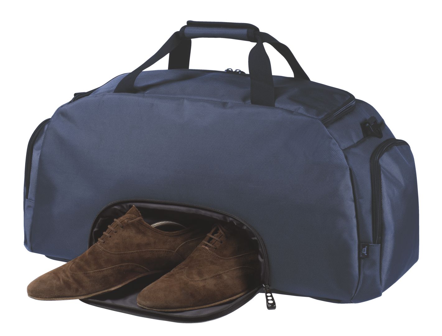Where are you travelling to today? A meeting in London, a weekend in Paris or simply going to the office? One thing is certain: with its elegantly structured materials, the elegant sports/travel bag MISSION exudes a subtle splendour. And makes being on-the-go considerably more comfortable with its multitude of helpful details. Here are just a few of them: a large opening for easy loading, main compartment with 2-way zipper, carrying strap with comfortable shoulder cushion, handle with grip section, bag feet... A premium item that is perfect for anyone who loves stylish, high quality promotional items.