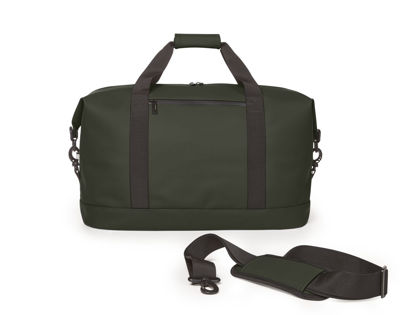 When was the last time you felt the urge to just set off into the world with a light bag? If you get that feeling again soon, we have the perfect piece of luggage for you: the PURE sports/travel bag. It looks good and has plenty to offer. One reason is the recycled outer material with beading effect, which defies rain showers - just like the waterproof zips. The other is the trendy colours and the elegant, minimalist design. The volume is anything but mini, which is just as suitable for a city trip as it is for a day in the gym or sauna. For a bit more, the carabiners can be released to free up some extra space. The whole thing is easy to carry thanks to the handles and the adjustable shoulder strap - both featuring comfortable padding and cuffs. And if you want to make things even easier when travelling, you can simply strap the PURE onto a trolley using the tab on the back. Enjoy your trip, or indeed your sport!