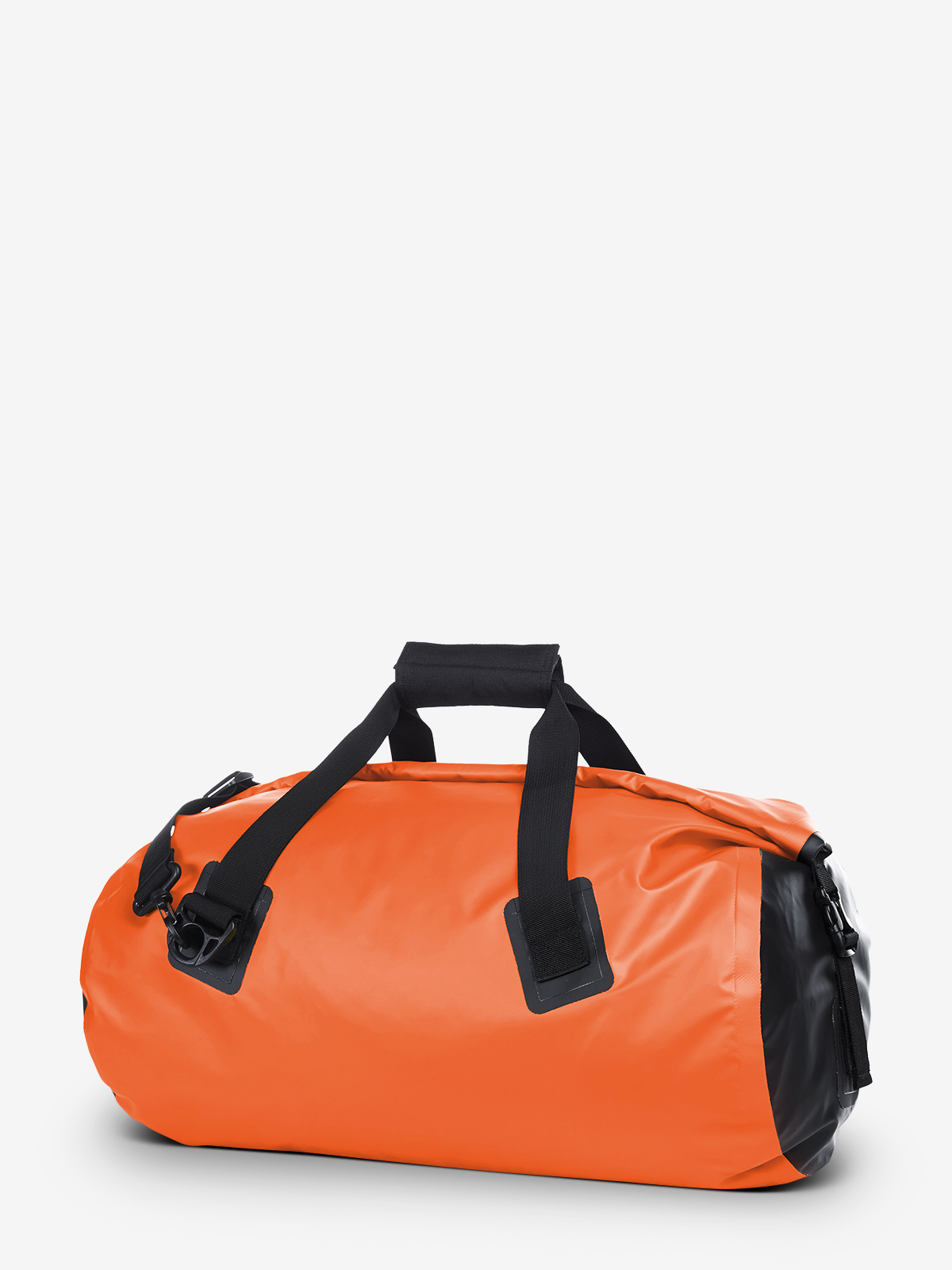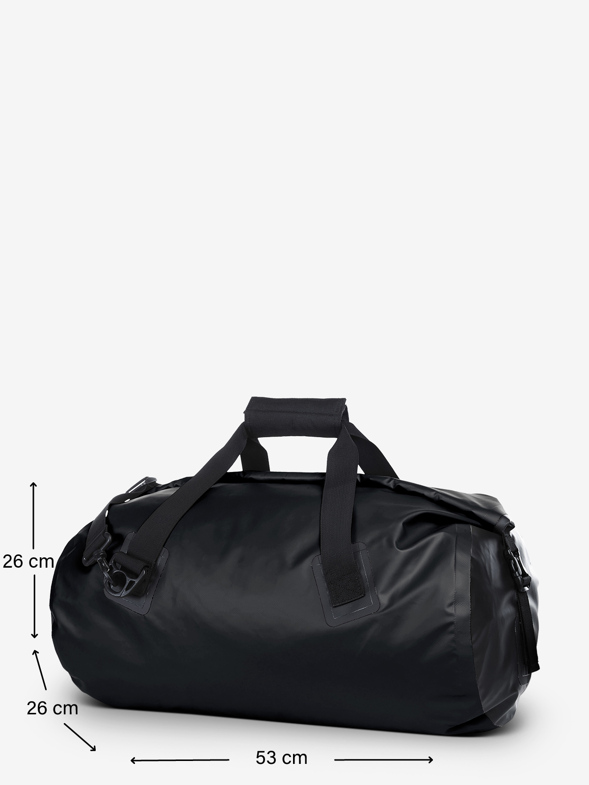 large main compartment with welds and roll closure protects the contents against water and dirt; lateral lashing straps; handles with padded grips; removable and length adjustable cross shoulder straps for optimal carrying comfort