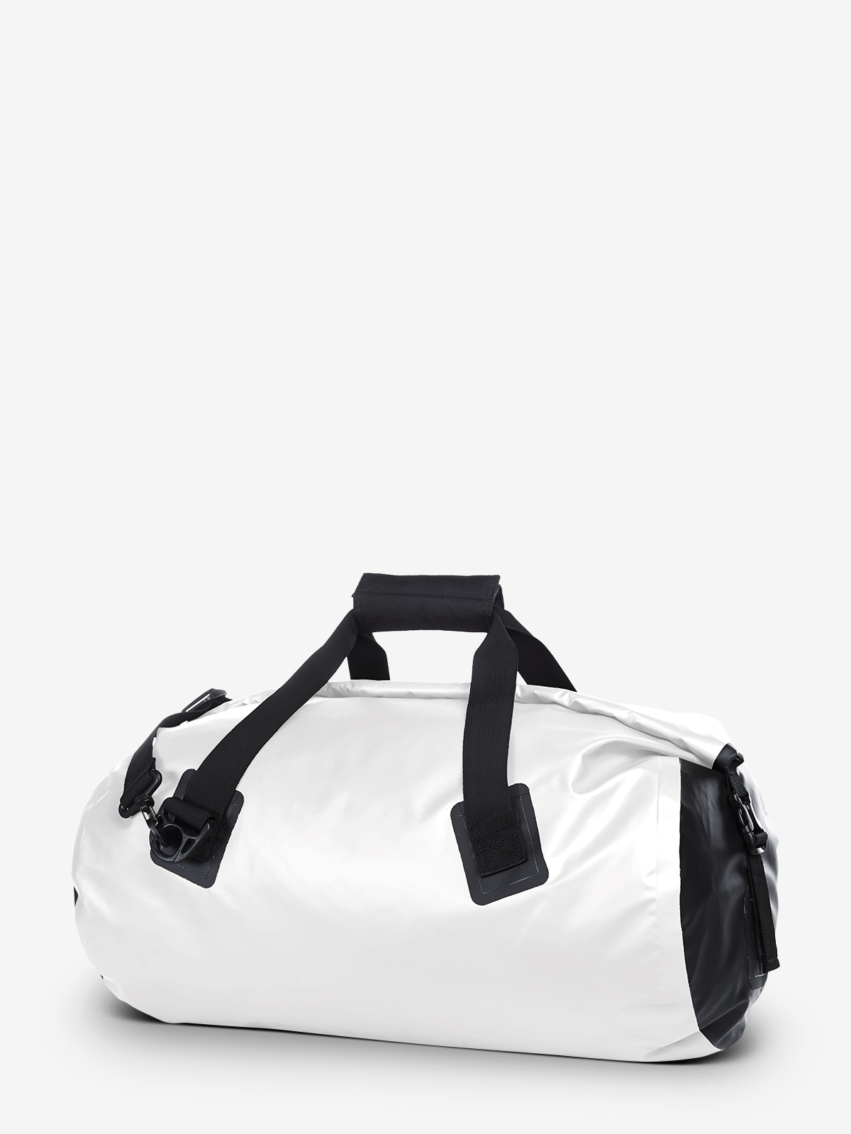 large main compartment with welds and roll closure protects the contents against water and dirt; lateral lashing straps; handles with padded grips; removable and length adjustable cross shoulder straps for optimal carrying comfort