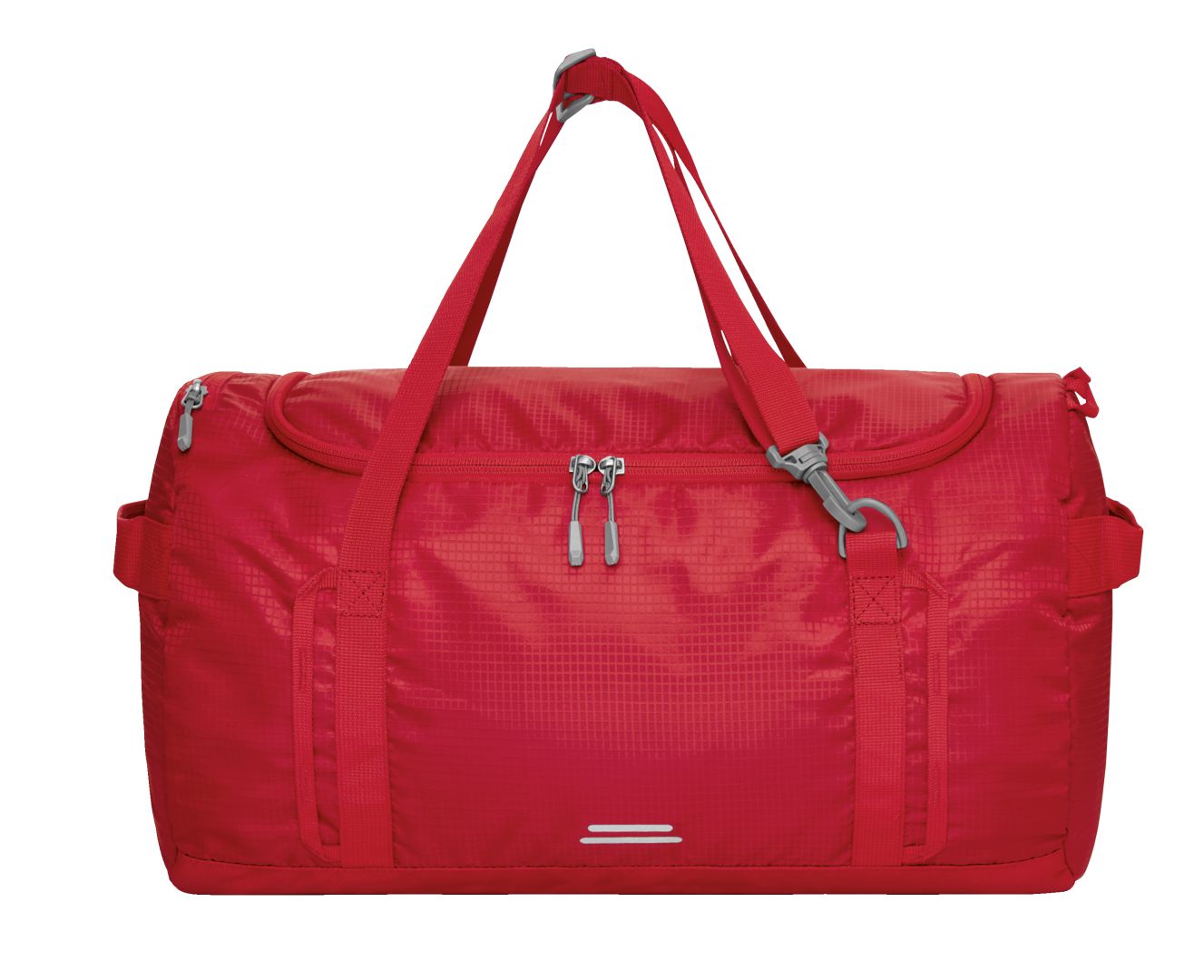 Lightweight, functional sports bag with backpack function; spacious main compartment; large opening with 2-way zip; zipped pocket in the lid; hanging as well as flat zipped pocket inside; zipped pocket on the side; functional strap band; handles on both sides; adjustable carrying handles can also be used as backpack straps; decorative reflective print