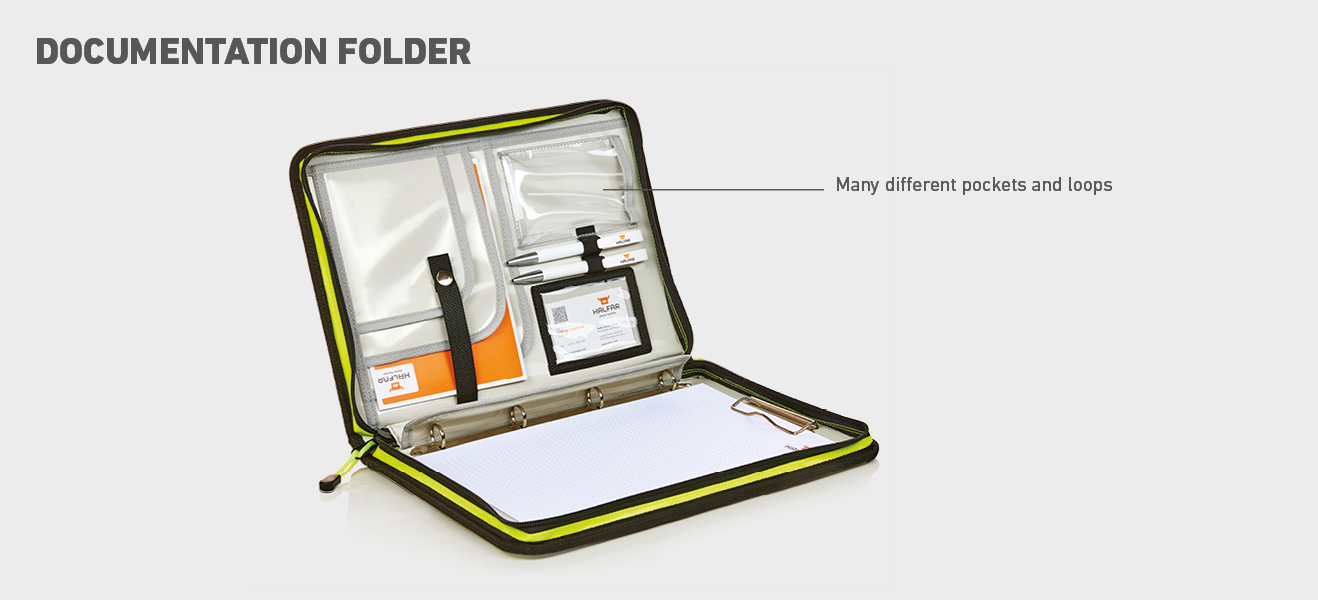 • Car equipment: as document bag, board book folder, car first-aid bag, cover for high-visibility waistcoats, etc.