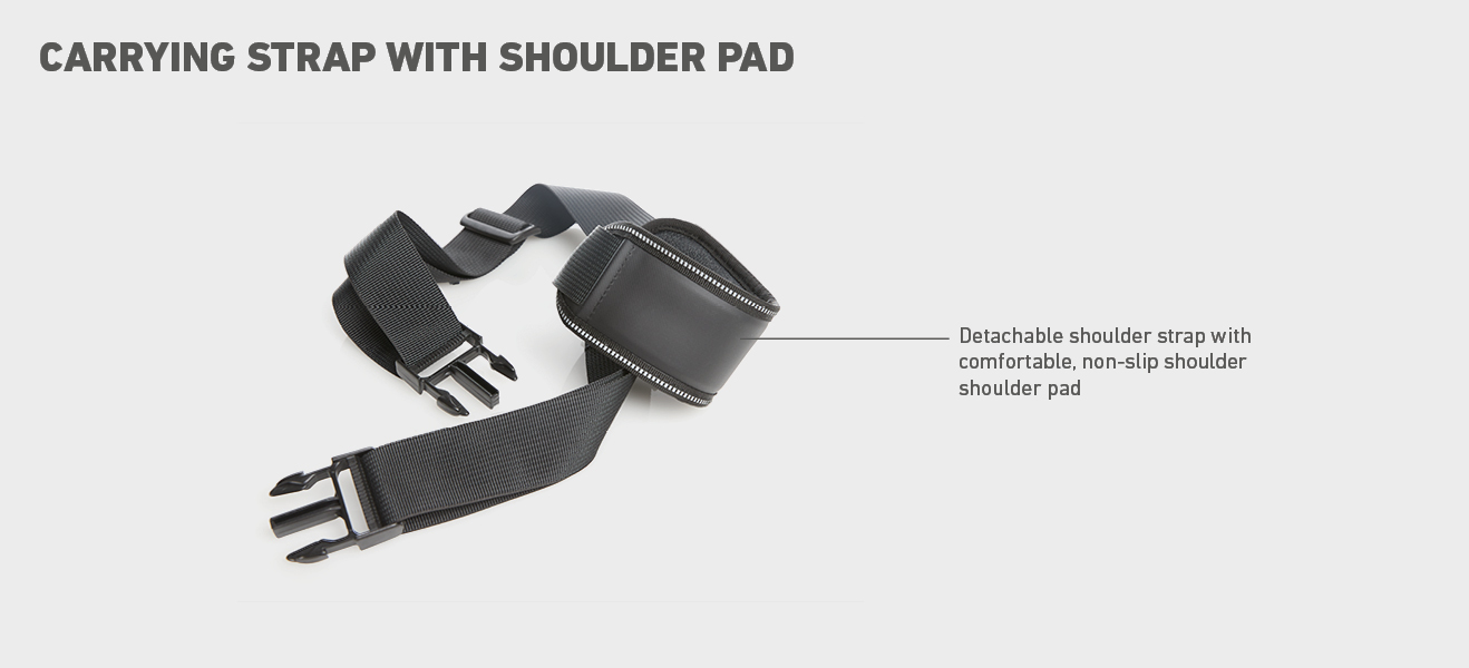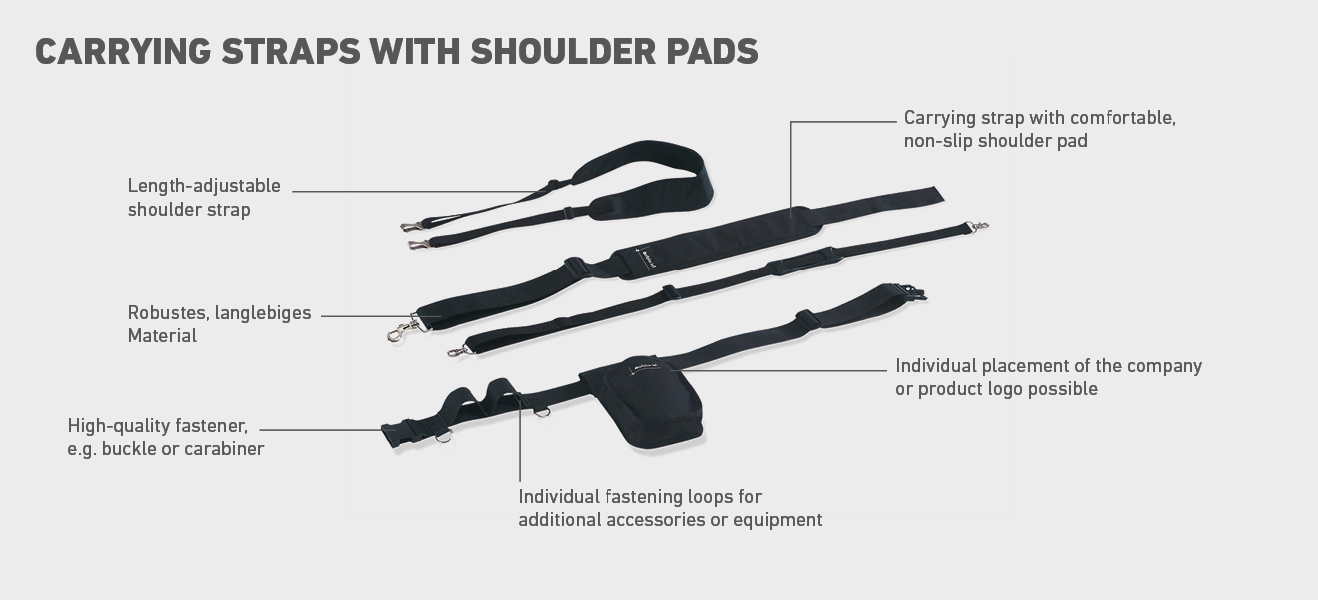 - Shoulder straps, padded harnesses and carrying systems for equipment and tools