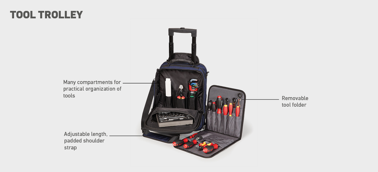 Cases as textile solutions protect the tools inside with panels and foams, provide stability and create good storage options. A typical example is the case for a drill or cordless screwdriver.
