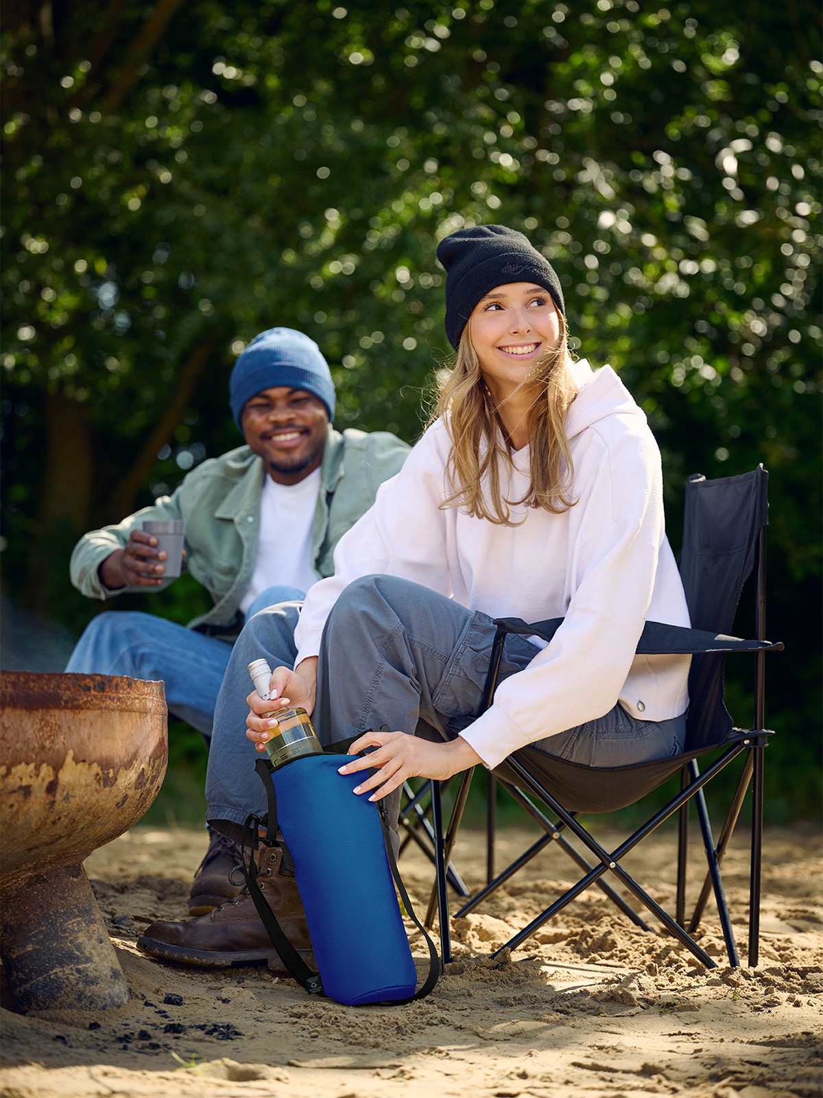 It is the guest gift par excellence, the number one present and always with you on outdoor activities: the bottle. If you want to give a bottle of champagne, a gift of home-made elderflower syrup or simply a bottle of cool water, the BOTTLE bag is the perfect choice. And it's so easy to carry as well, because it features a practical strap. In addition to this, the padded thermal bottle bag with recycled outer material has a roll-top zip and buckle. Thanks to the varied selection of colours, it adapts stylishly to situations, brands and events and could be seen at city fairs, festivals, fishing, camping, or at the next company party. By the way: even bulbous or longer 1-litre champagne or wine bottles fit in easily. You can reach a little higher on the shelf, because the price for the packaging with the BOTTLE Thermobag is surprisingly low.