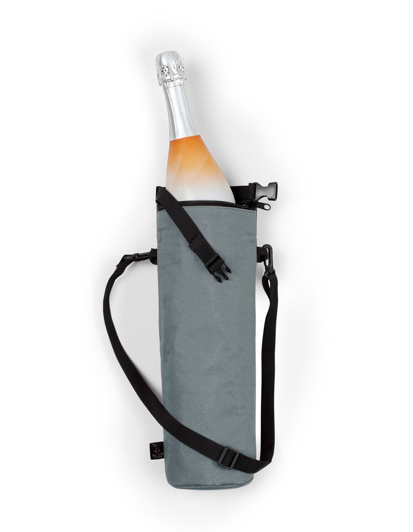 It is the guest gift par excellence, the number one present and always with you on outdoor activities: the bottle. If you want to give a bottle of champagne, a gift of home-made elderflower syrup or simply a bottle of cool water, the BOTTLE bag is the perfect choice. And it's so easy to carry as well, because it features a practical strap. In addition to this, the padded thermal bottle bag with recycled outer material has a roll-top zip and buckle. Thanks to the varied selection of colours, it adapts stylishly to situations, brands and events and could be seen at city fairs, festivals, fishing, camping, or at the next company party. By the way: even bulbous or longer 1-litre champagne or wine bottles fit in easily. You can reach a little higher on the shelf, because the price for the packaging with the BOTTLE Thermobag is surprisingly low.