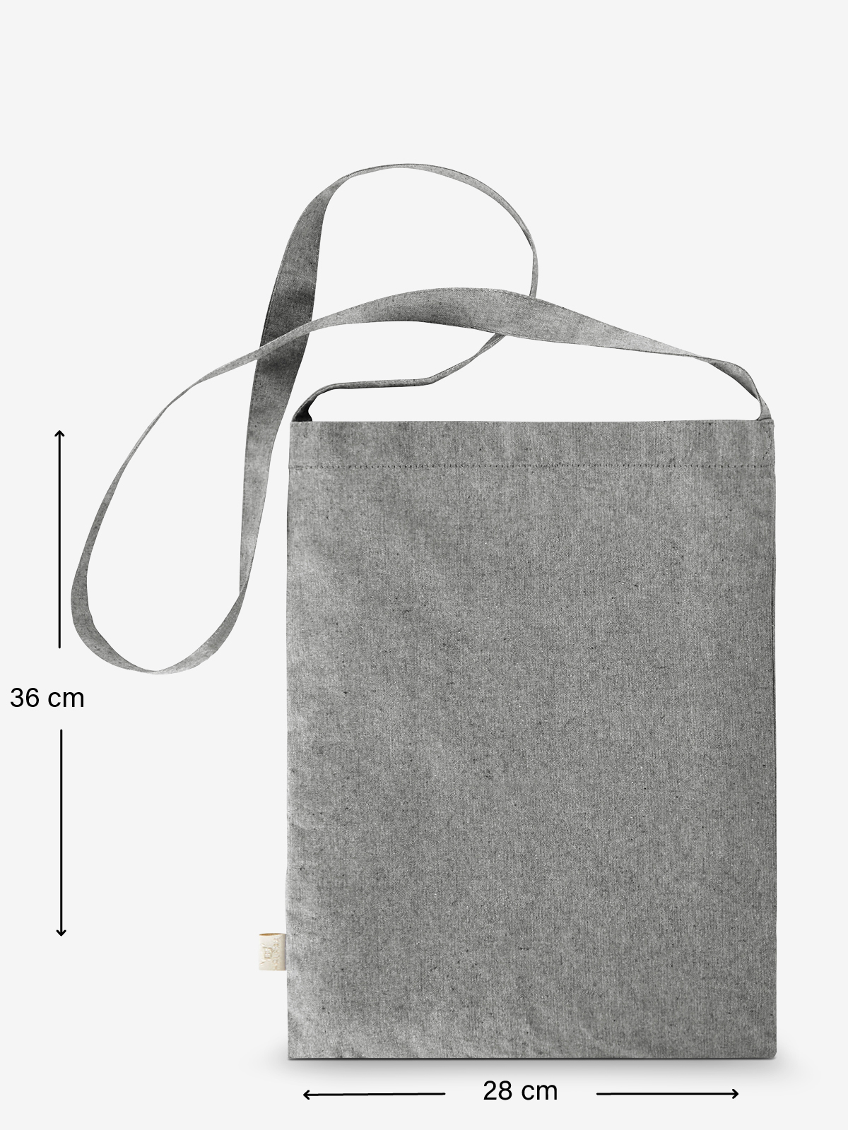 streamlined tote bag made from pre-recycled cotton; ideal for A4 documents; long shoulder strap