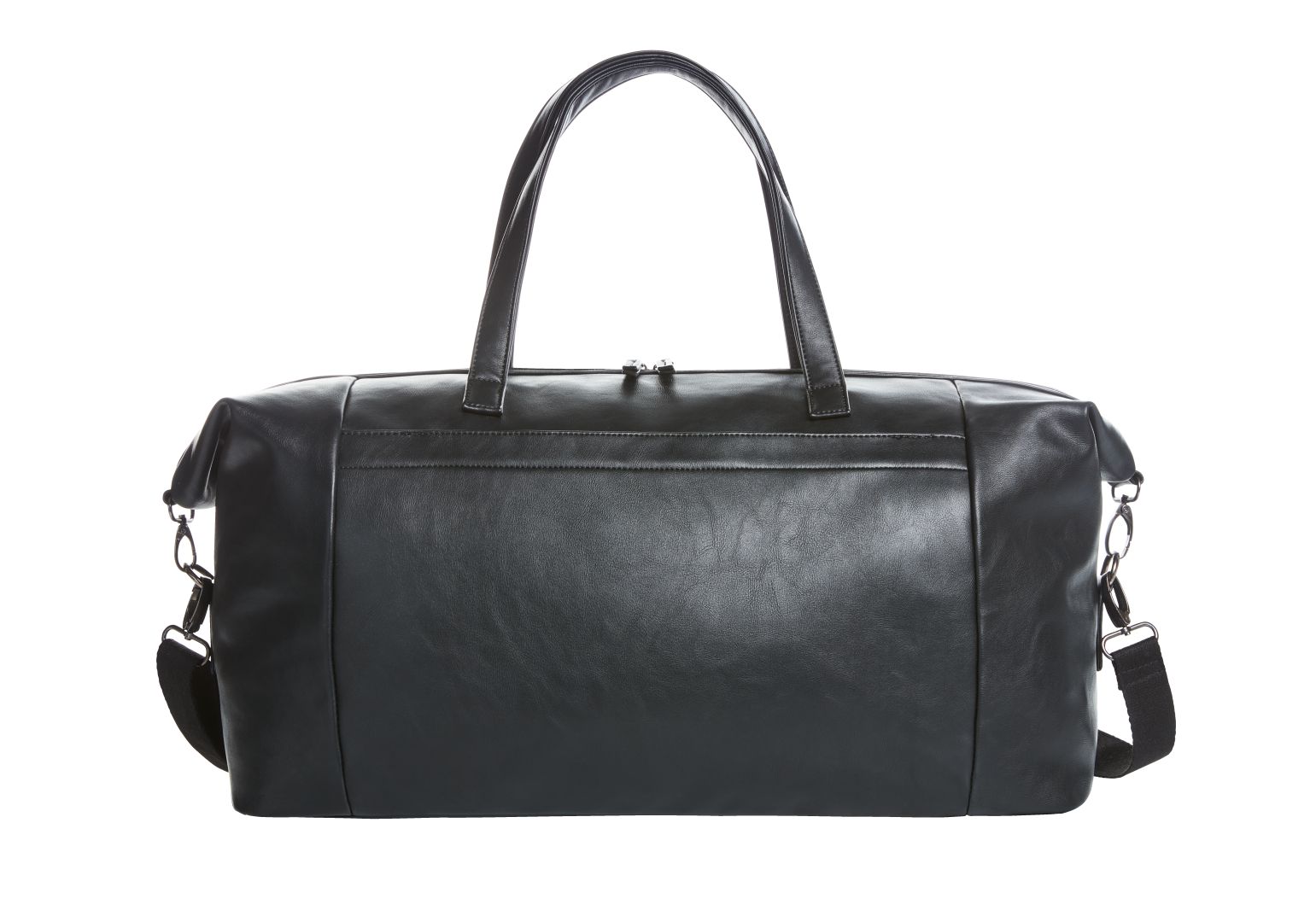 classically elegant travel bag with high-quality metal accessories; main compartment with 2-way zipper; inner zipped compartment; three flat slip-in pockets; three pen-holder loops; flat front pocket with magnetic closure; handles; reinforced bottom; detachable, length-adjustable shoulder strap