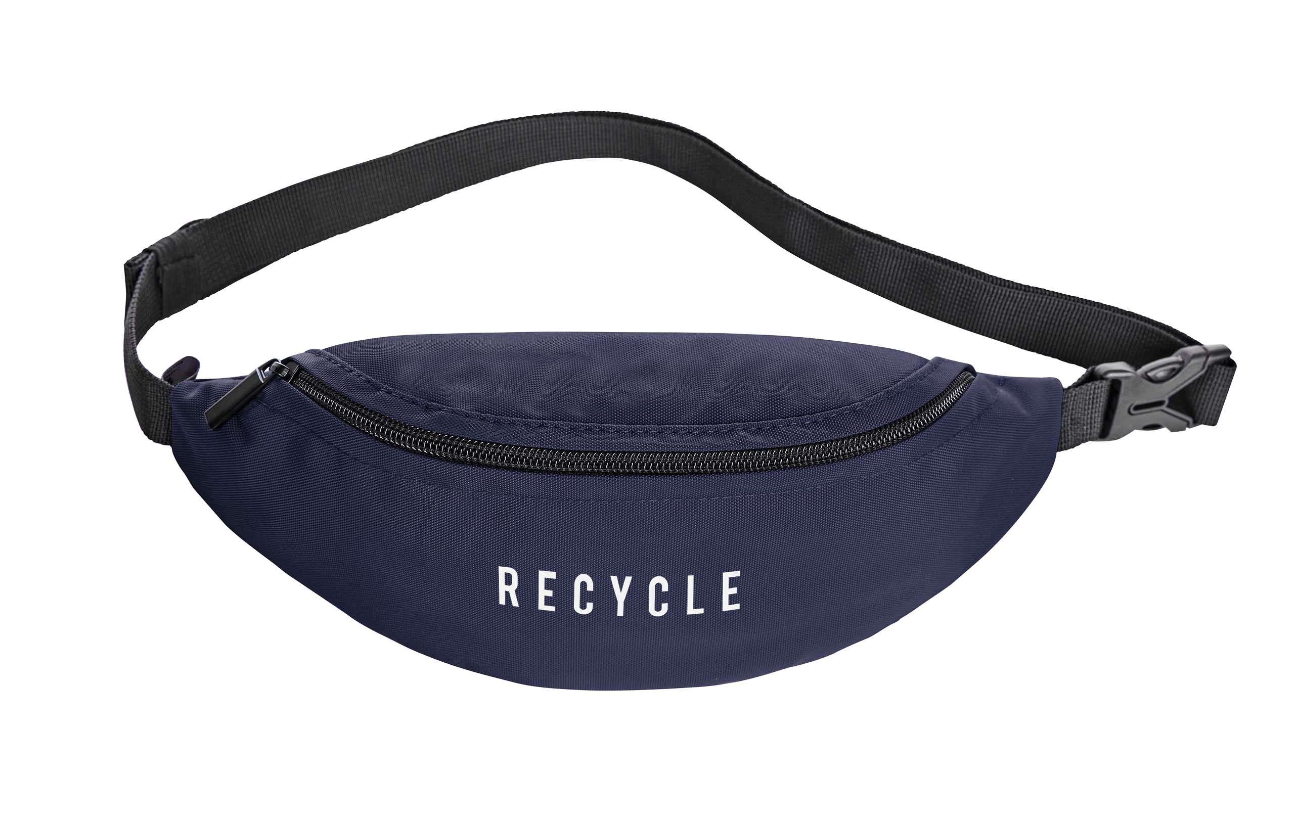 Lightweight sling bag; RPET upper material; zipped main compartment; zipped compartment on the back; length-adjustable, side-closing waist strap with elastic tab