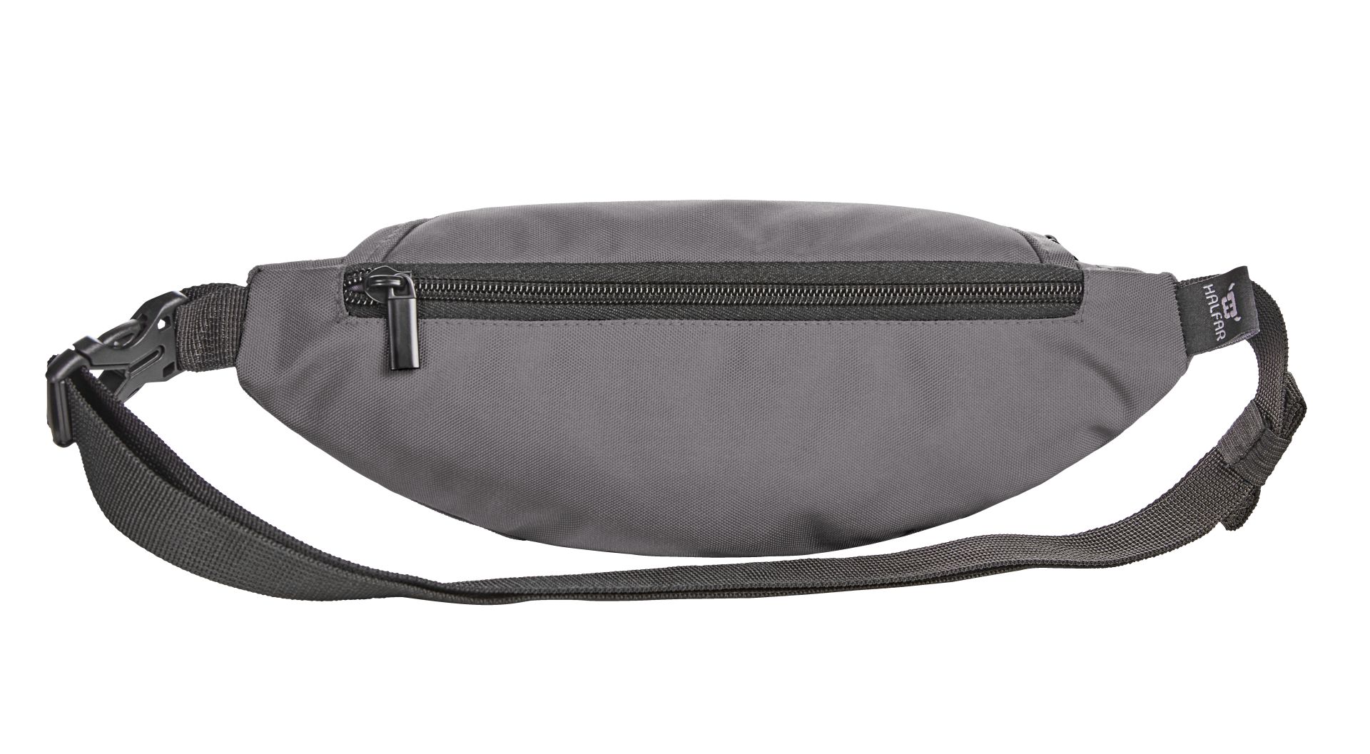 Lightweight sling bag; RPET upper material; zipped main compartment; zipped compartment on the back; length-adjustable, side-closing waist strap with elastic tab