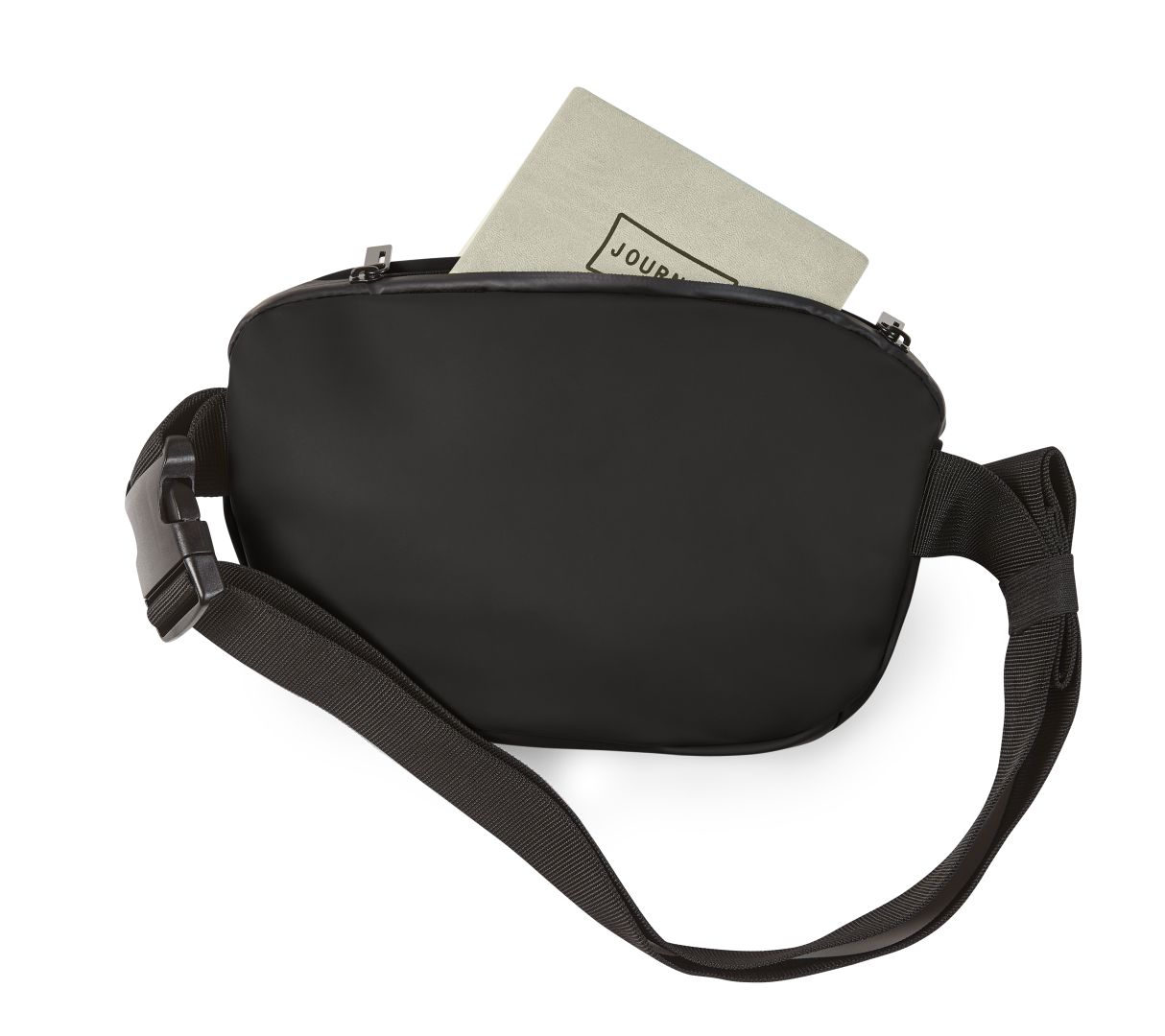 A beautiful piece of design and functionality for every day. And by every day we really mean every day, rain included. After all, the droplets simply bead off the recycled outer material. The zips are also watertight. Everything stays dry and organised inside - whether in the main compartment with a 2-way zip, in the flat slide-in pocket or in the front zip pocket. The bright lining is a beacon of light in any weather anyway and the fashionable colours enhance any outfit. Especially when this waist bag is worn as a cross-body bag. The strap is of course adjustable, and the rubber strap fixes any excess length. By the way: the large buckle is attached to the side for a reason - for easier use and theft protection.