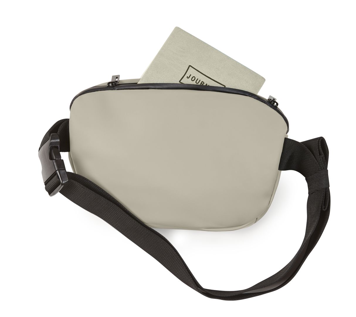 trendy hip bag; main compartment with 2-way zipper and flat inner pocket; water-repellent zippers; front pocket with zipper; adjustable strap with elastic flap to secure the strap; can be worn as a hip or body bag; large side buckle for easy opening and closing