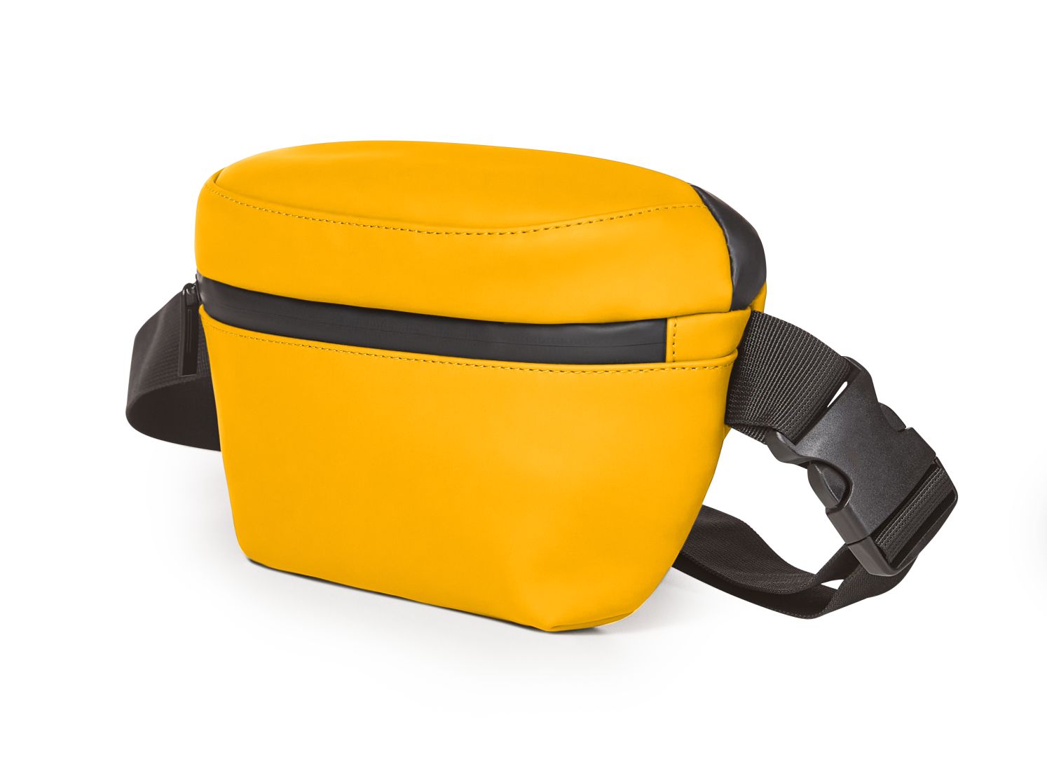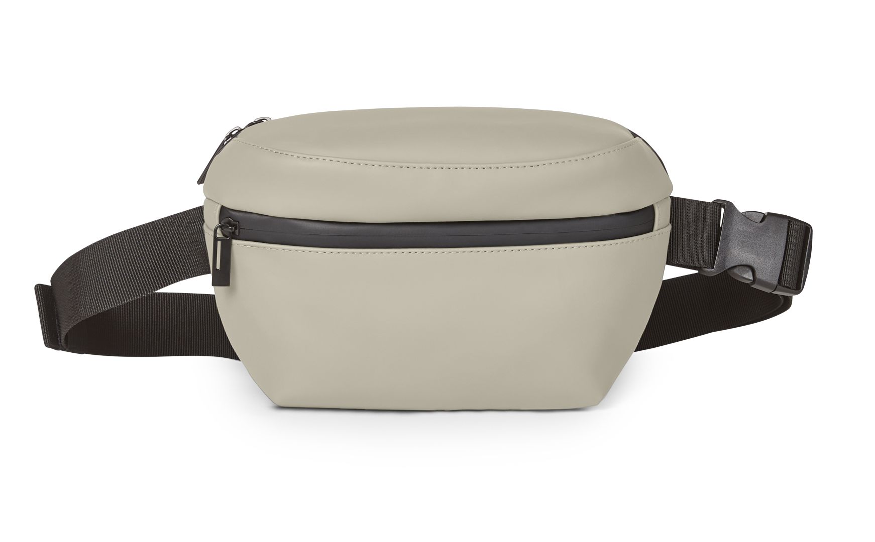 A beautiful piece of design and functionality for every day. And by every day we really mean every day, rain included. After all, the droplets simply bead off the recycled outer material. The zips are also watertight. Everything stays dry and organised inside - whether in the main compartment with a 2-way zip, in the flat slide-in pocket or in the front zip pocket. The bright lining is a beacon of light in any weather anyway and the fashionable colours enhance any outfit. Especially when this waist bag is worn as a cross-body bag. The strap is of course adjustable, and the rubber strap fixes any excess length. By the way: the large buckle is attached to the side for a reason - for easier use and theft protection.