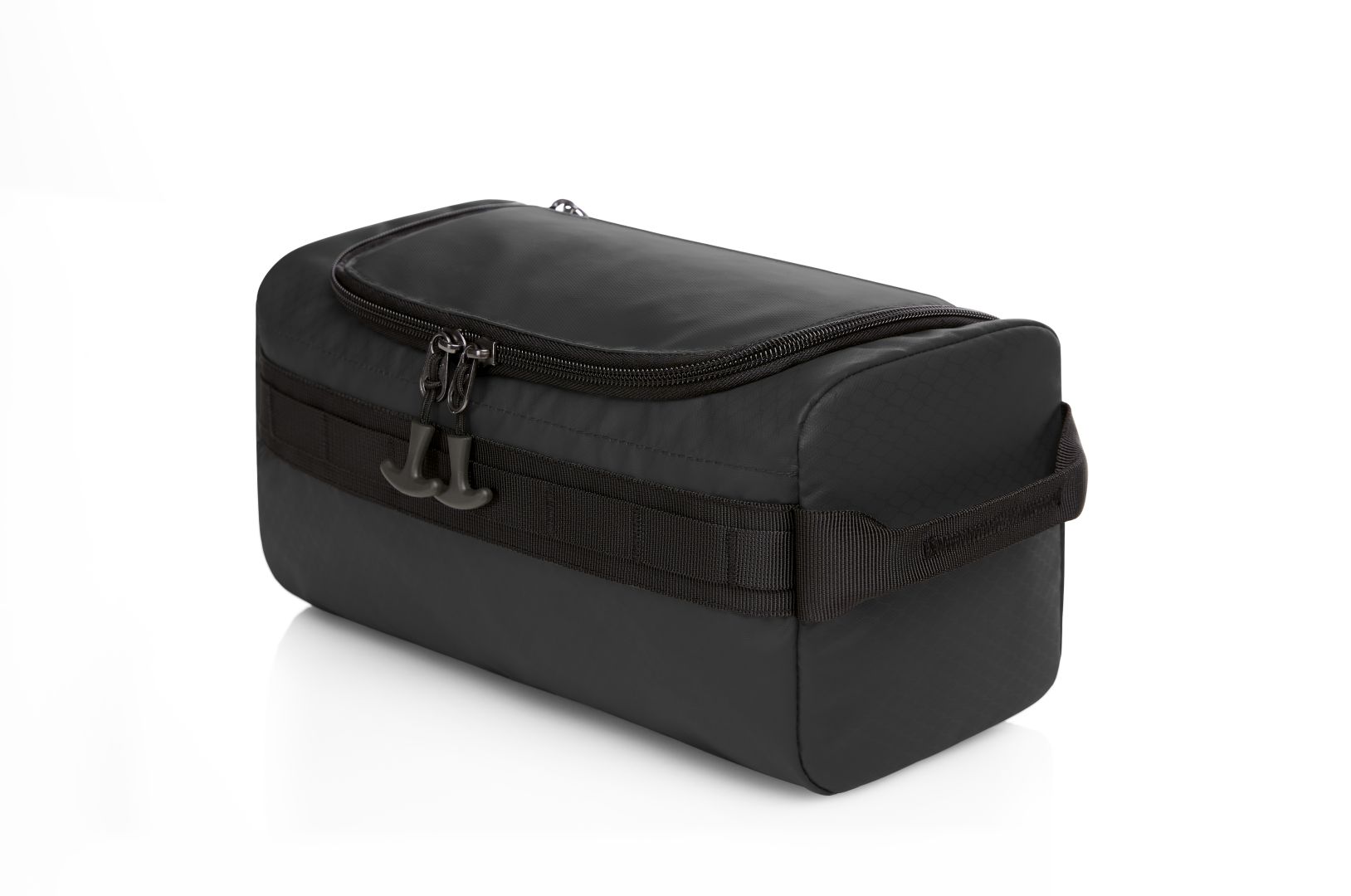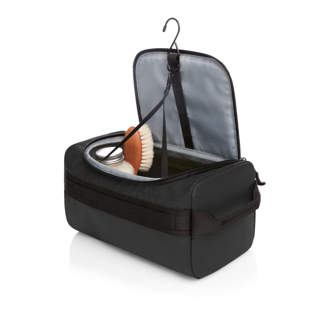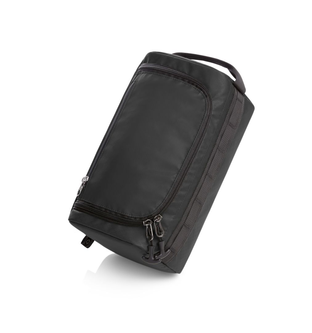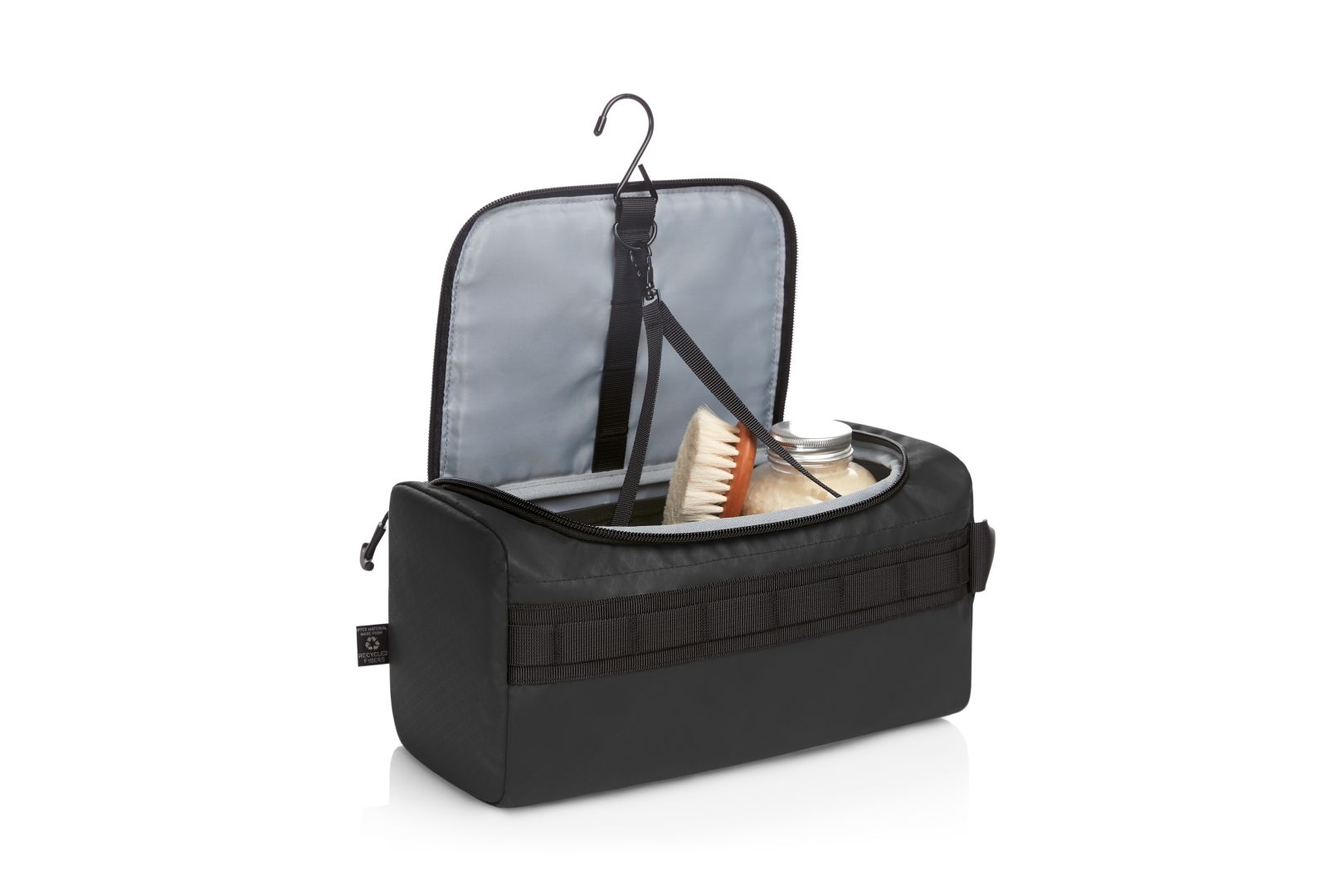 Always keeping your cosmetics at eye level: the extremely spacious ACTIVE toiletry bag can be stood up or hung up. It can do both virtually from a standing start - thanks to the padding in the side and lid, the soft surface material stays in perfect shape in any position. And it looks great too, with its exciting material combo and partial embossing as well as the anchor-shaped hooks. The ACTIVE toiletry bag with become your best companion, not least because of the various compartments and considerable volume. Everything a holiday needs in terms of wash and cosmetic items simply fits inside. And the clever design also impresses in practice. Lots inside, lots more: toothbrushes, razors and plenty of other items can be hung up in the outside loops. Inside, the light-coloured lining makes it easy to find things.