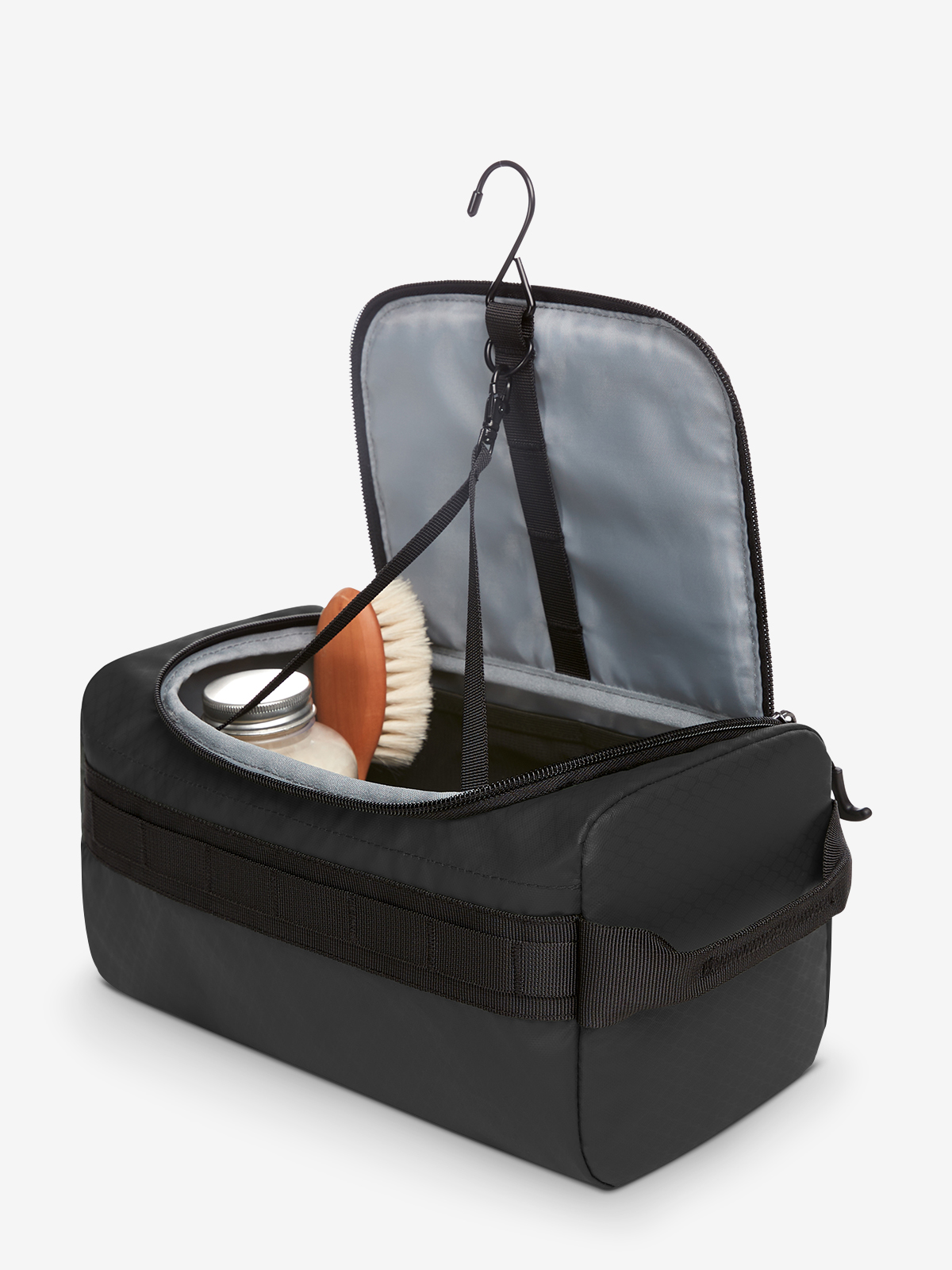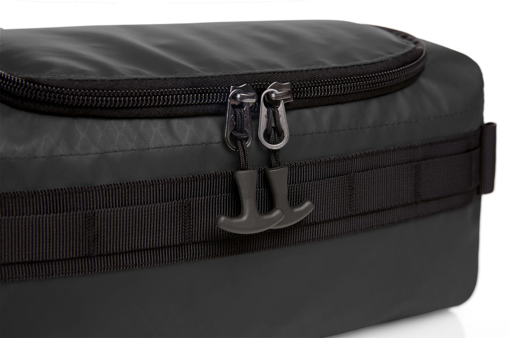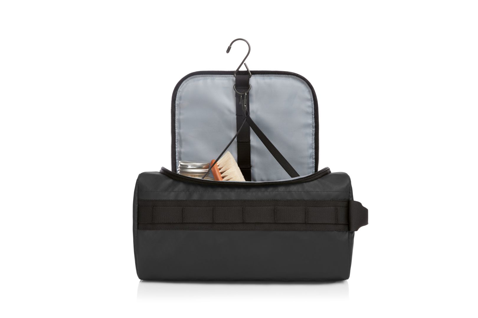 Always keeping your cosmetics at eye level: the extremely spacious ACTIVE toiletry bag can be stood up or hung up. It can do both virtually from a standing start - thanks to the padding in the side and lid, the soft surface material stays in perfect shape in any position. And it looks great too, with its exciting material combo and partial embossing as well as the anchor-shaped hooks. The ACTIVE toiletry bag with become your best companion, not least because of the various compartments and considerable volume. Everything a holiday needs in terms of wash and cosmetic items simply fits inside. And the clever design also impresses in practice. Lots inside, lots more: toothbrushes, razors and plenty of other items can be hung up in the outside loops. Inside, the light-coloured lining makes it easy to find things.