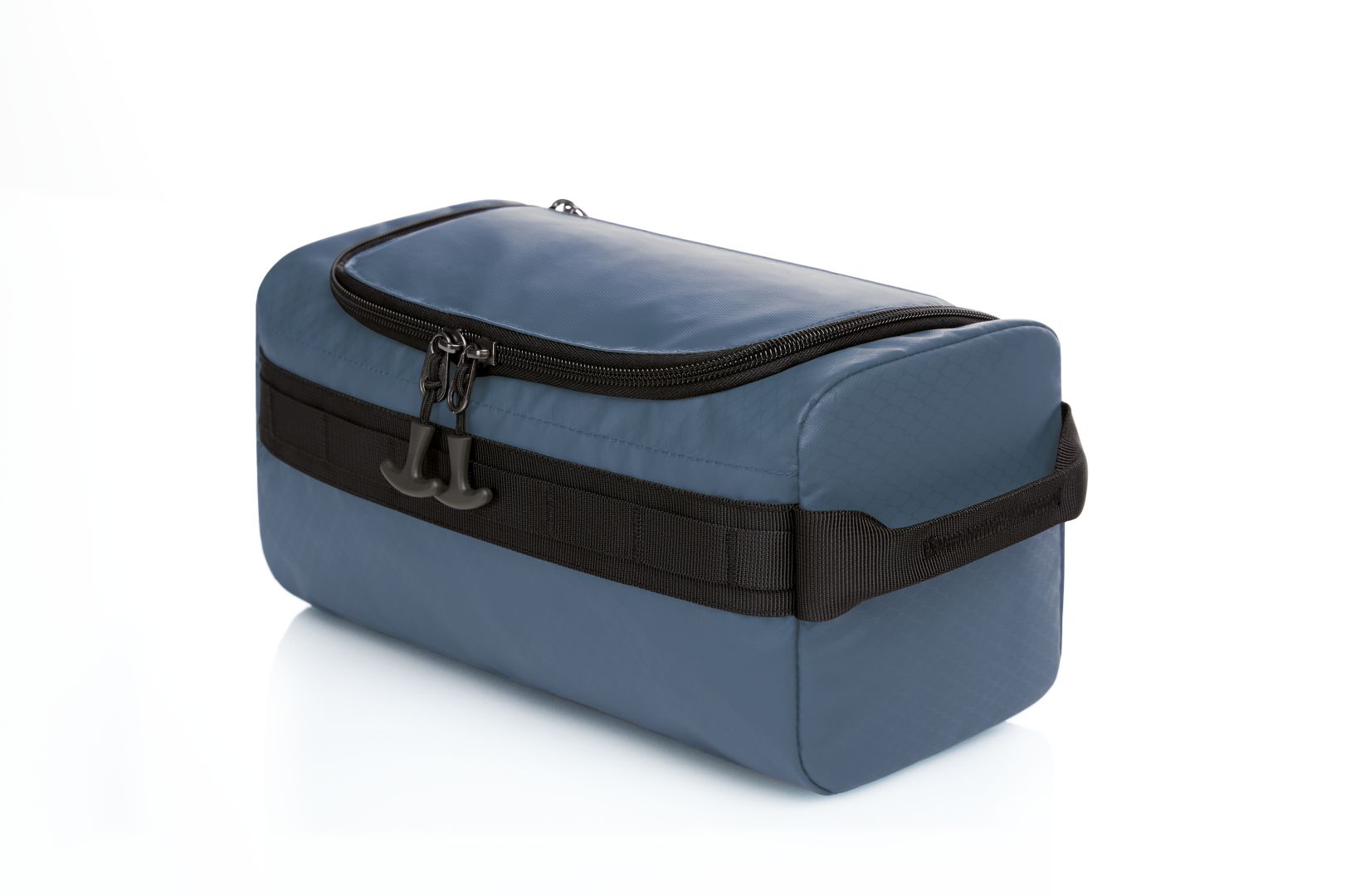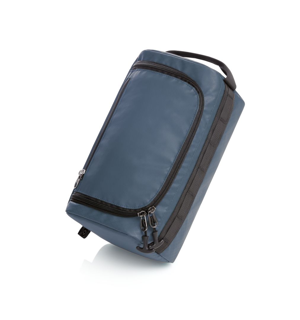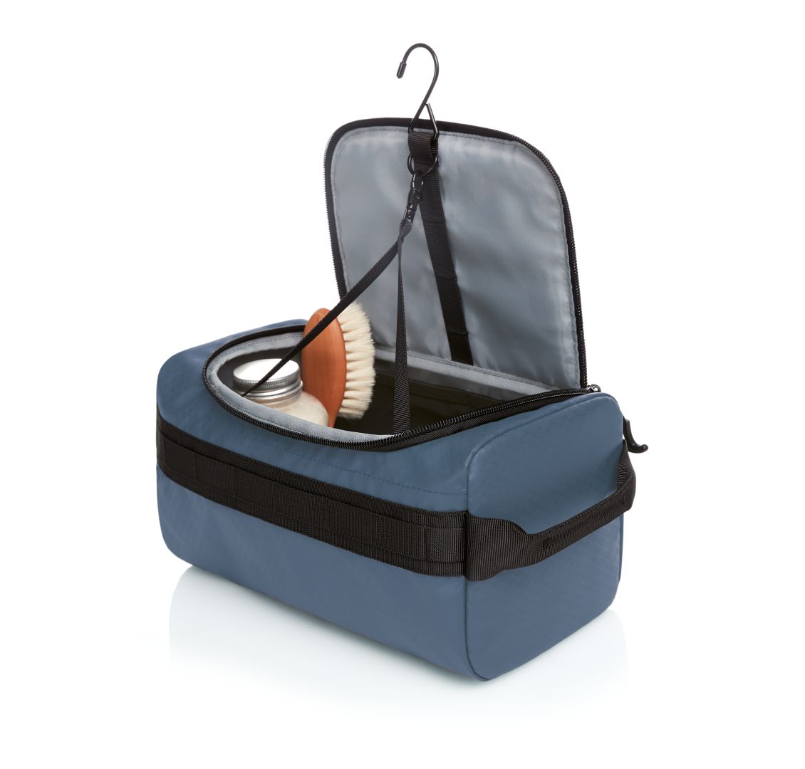 Always keeping your cosmetics at eye level: the extremely spacious ACTIVE toiletry bag can be stood up or hung up. It can do both virtually from a standing start - thanks to the padding in the side and lid, the soft surface material stays in perfect shape in any position. And it looks great too, with its exciting material combo and partial embossing as well as the anchor-shaped hooks. The ACTIVE toiletry bag with become your best companion, not least because of the various compartments and considerable volume. Everything a holiday needs in terms of wash and cosmetic items simply fits inside. And the clever design also impresses in practice. Lots inside, lots more: toothbrushes, razors and plenty of other items can be hung up in the outside loops. Inside, the light-coloured lining makes it easy to find things.