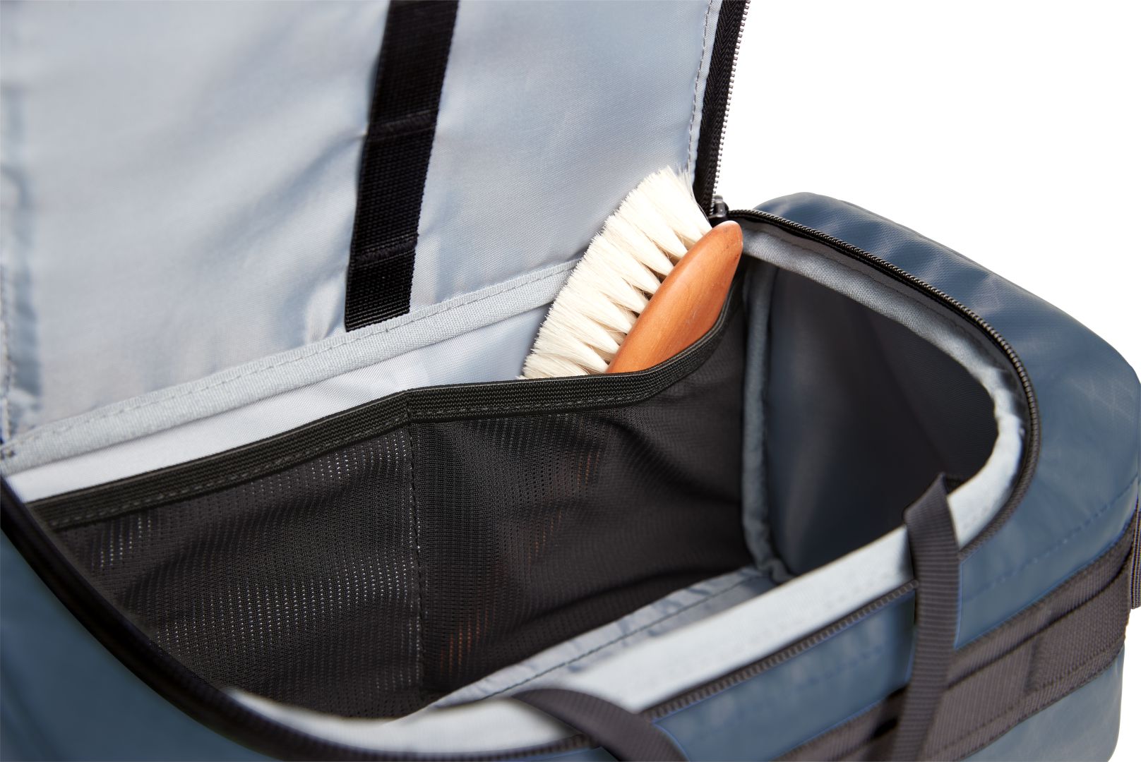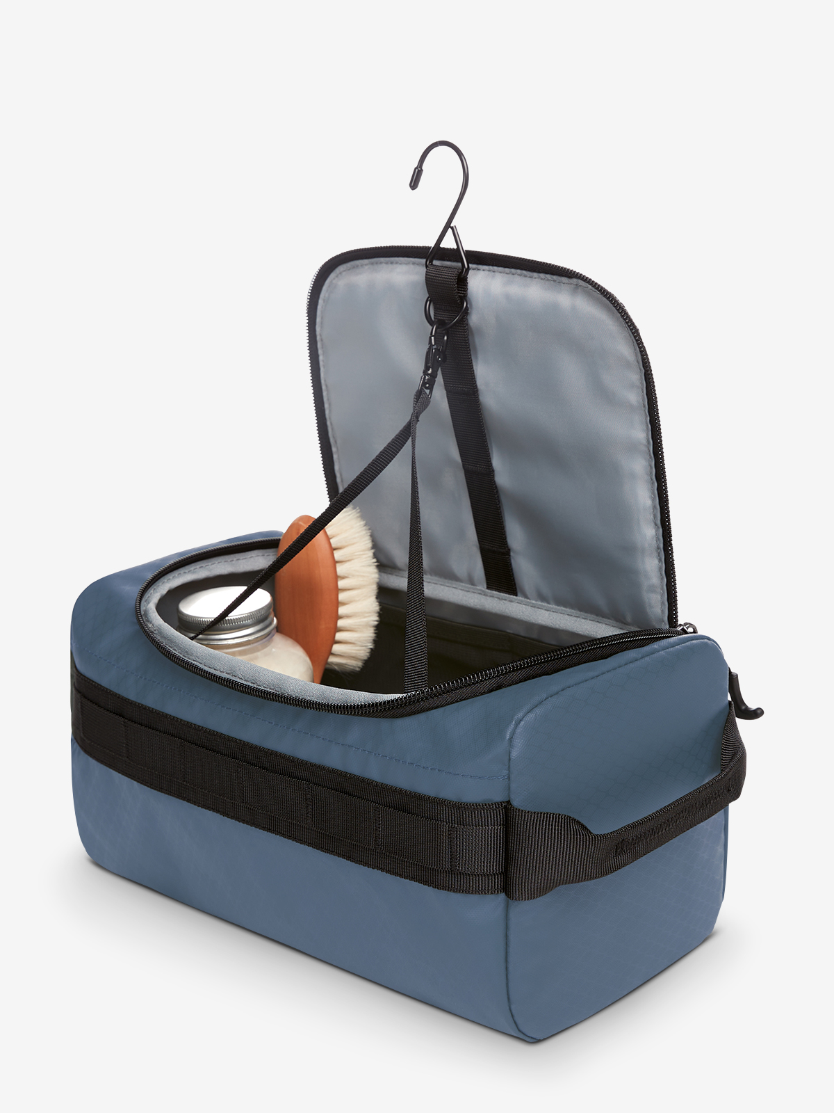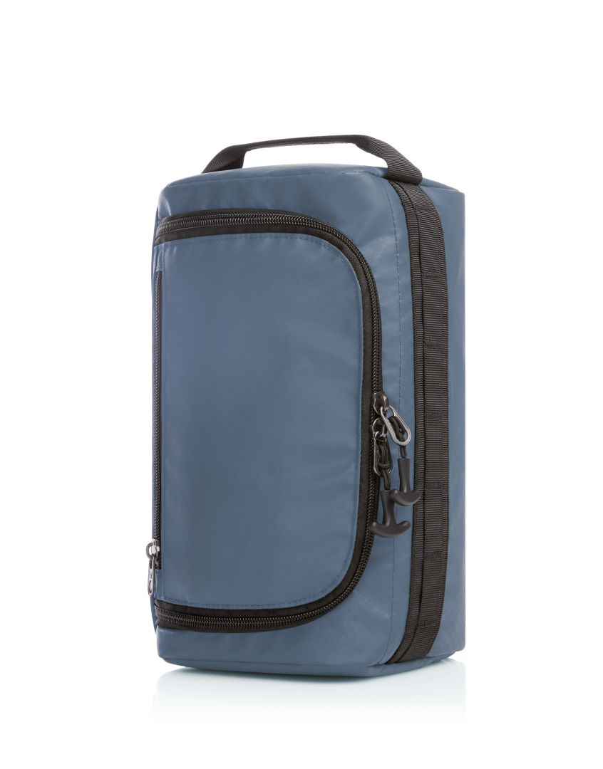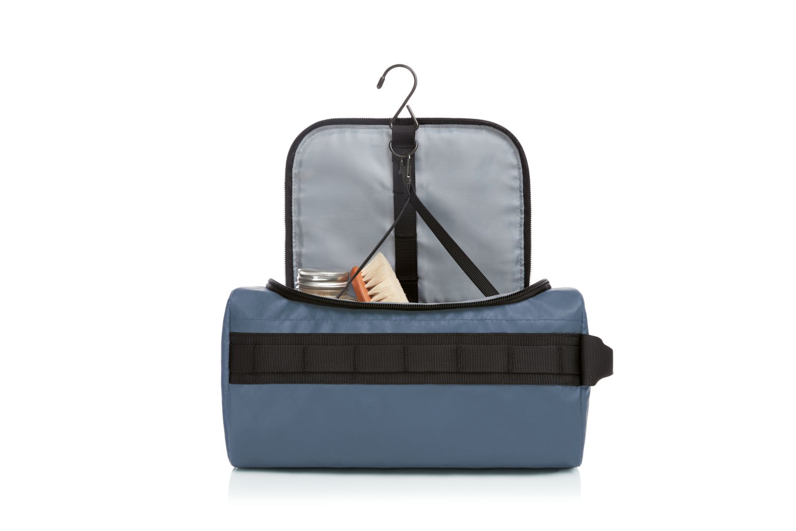 Always keeping your cosmetics at eye level: the extremely spacious ACTIVE toiletry bag can be stood up or hung up. It can do both virtually from a standing start - thanks to the padding in the side and lid, the soft surface material stays in perfect shape in any position. And it looks great too, with its exciting material combo and partial embossing as well as the anchor-shaped hooks. The ACTIVE toiletry bag with become your best companion, not least because of the various compartments and considerable volume. Everything a holiday needs in terms of wash and cosmetic items simply fits inside. And the clever design also impresses in practice. Lots inside, lots more: toothbrushes, razors and plenty of other items can be hung up in the outside loops. Inside, the light-coloured lining makes it easy to find things.