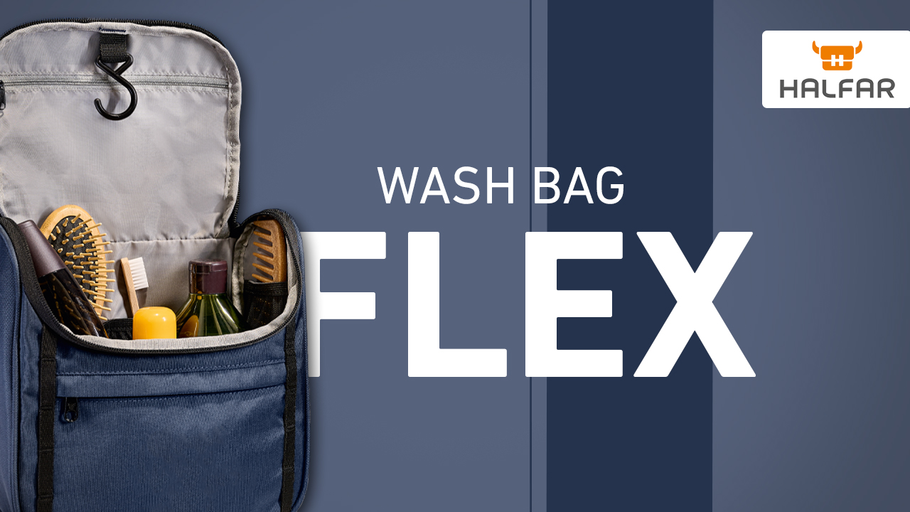 Shampoo bottle, perfume bottle, toothpaste... there are lots of things in the bathroom that you would rather have stood up than lying around. “Wouldn't it make sense for a wash bag to have an upright format?” our designers asked. And with FLEX, they provide the right answer. Its large opening presents the contents almost like your bathroom cabinet at home. This means that nothing has to be unpacked, everything is directly in view and within reach - or discreetly stowed away in the front or inside pocket with zip. The loop strap at the front offers an extra possibility to put more inside and mesh pockets organise the contents. The lightweight bag with the shiny recycled outer material and grey lining also looks really good - whether it is standing or hanging on the integrated hook.