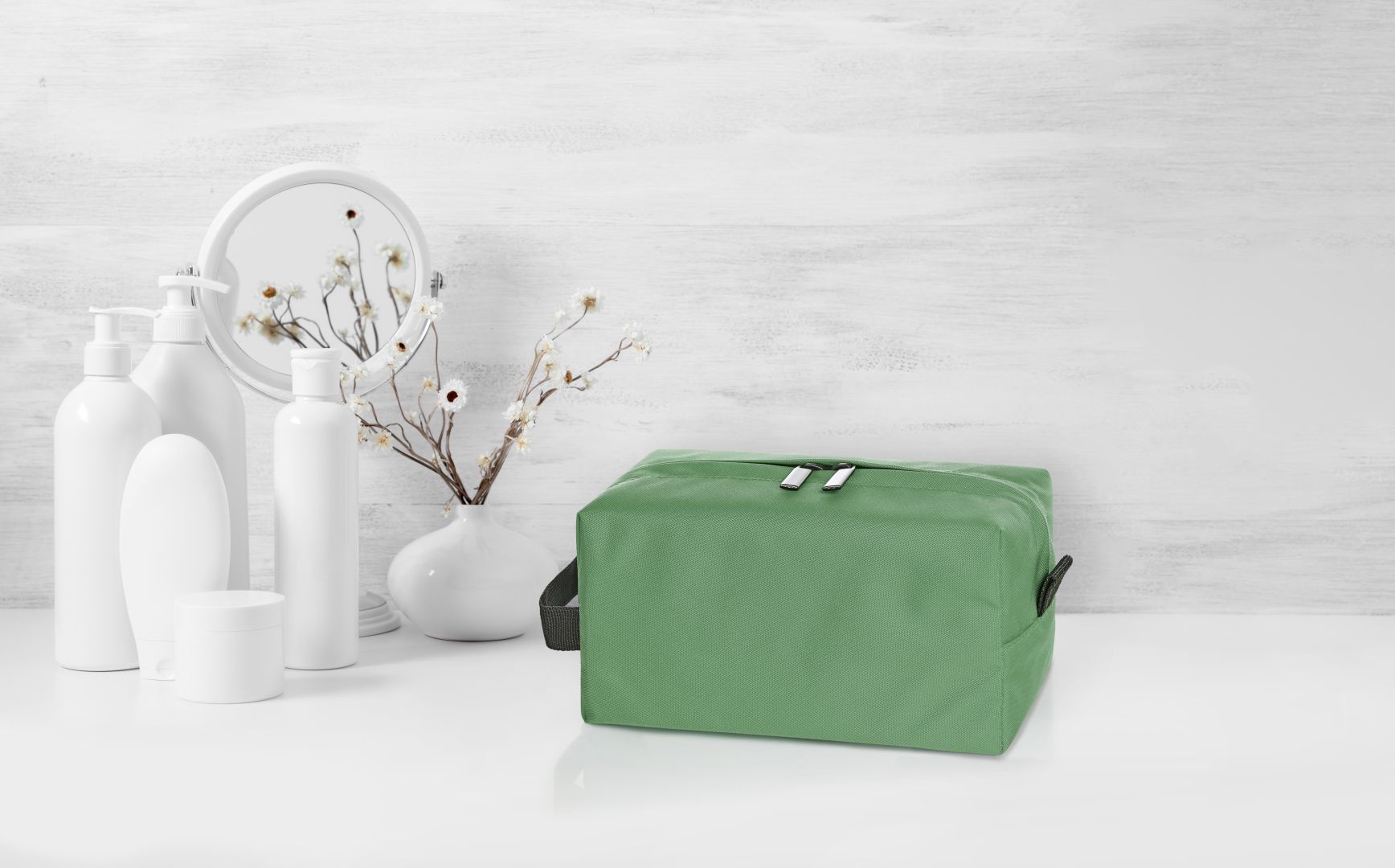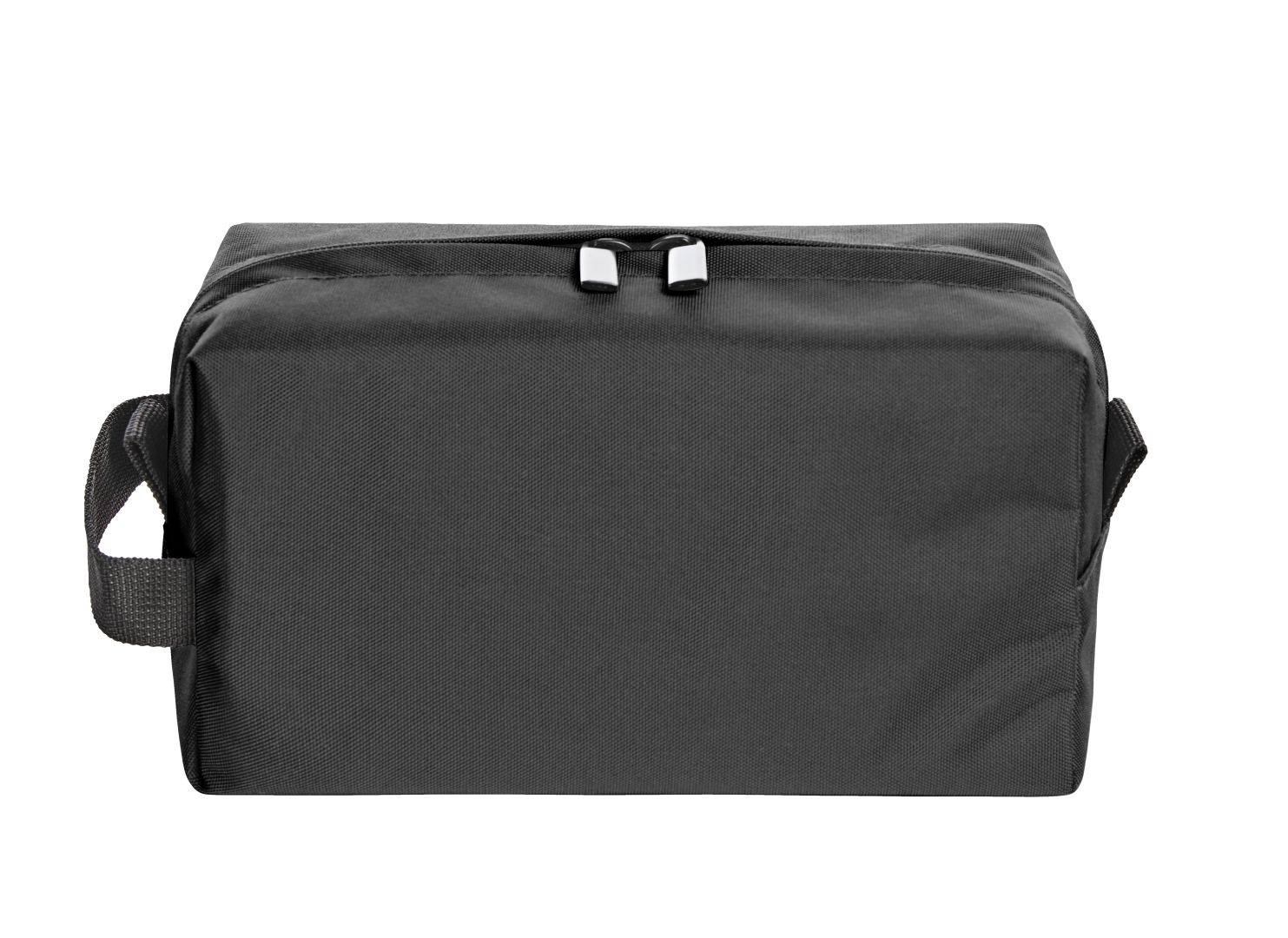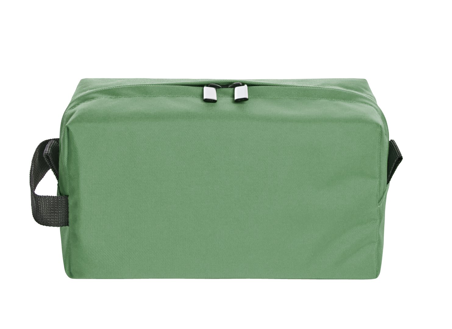 Practical rectangular-shaped zipped bag for many uses; RPET outer material; large 2-way zipped main compartment; mesh pocket inside; side grip tabs for easy opening; handle