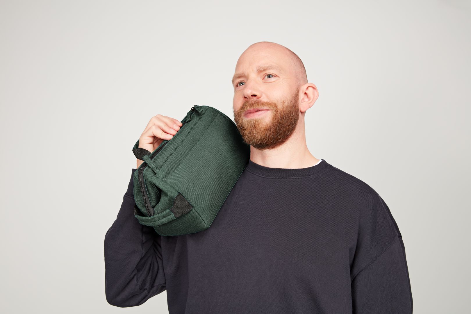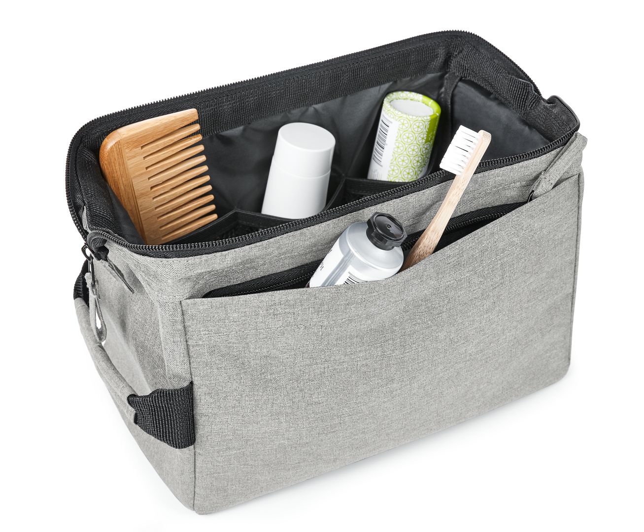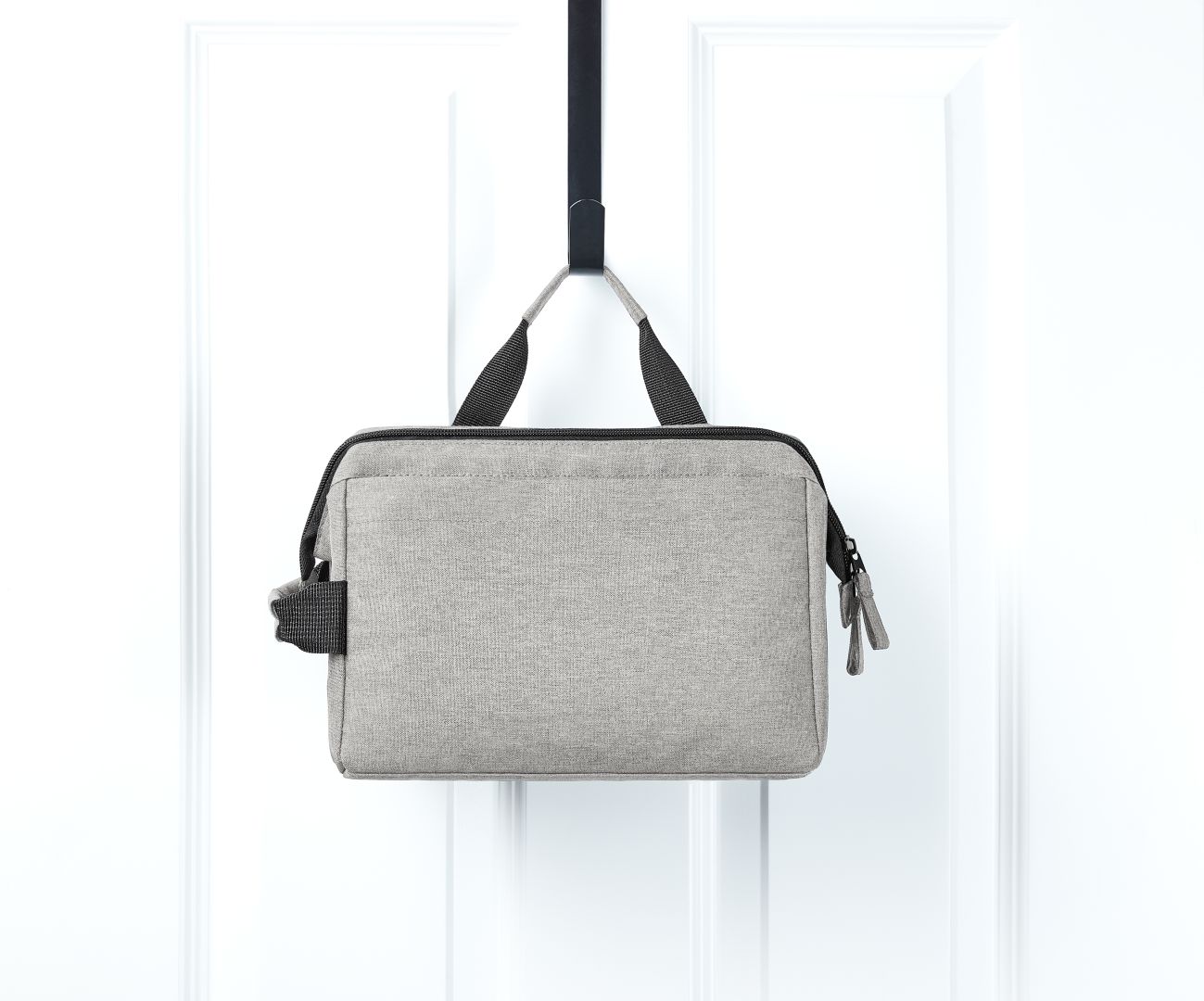 This CIRCLE is a very attractive and highly practical wash bag. And that’s not all: like all zippered bags, it literally packs a lot in. After all, there’s plenty of space to stash things in the compartments and organiser, whether for business, a hobby or for travelling, of course… The CIRCLE bag makes life even easier for people who like everything in its place, who don’t want to rummage around but who always want to see everything at a glance: a metal clasp holds the bag wide open if required. It can also be hung up or placed on its side, plus it’s padded. Another great feature: in the interests of sustainability, the CIRCLE is made with rPET produced from recycled PET bottles.