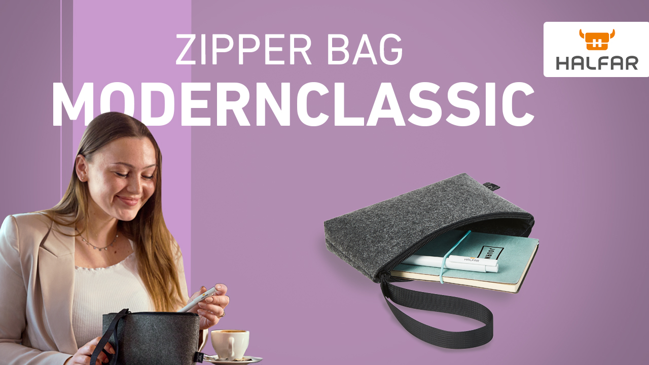 For some it's lip balm and mascara, for others it's charging cables and headphones: the little things ofeveryday life that always want to be there. The ModernClassic zipper felt pouchgives you a storage space that is as beautiful as it is stylish. The size isjust right to take with you wherever you go, whether it's to your desk or thebeach. The loop is easy to grip, carry and fish out of a larger bag. And one ofthe best things: The ModernClassic zipper bag is made of a recycled materialand feels wonderfully supple and warm, ideal for people who like to be creativeand spontaneous – and always well prepared.