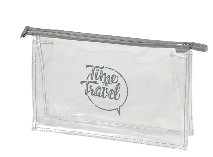 When you go on a journey you obviously don't want to have to do without your cosmetics and toiletries. The stylish zipper bag UNIVERSAL is an ideal container for these. The bag is 27 cm wide, thus providing enough space for shampoo, shower gel, toothbrush and whatever else you need to look good and feel fresh. It is made from hard-wearing transparent plastic. A grey trimming lends the bag a refined touch.